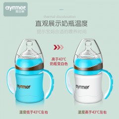爱因美 婴儿奶瓶玻璃防爆防摔带手柄吸管新生儿宽口径宝宝防胀气