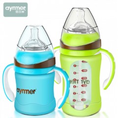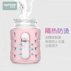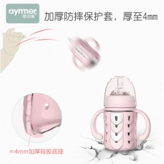 爱因美 奶瓶玻璃婴儿 宽口径新生儿玻璃奶瓶防摔保护套硅胶宝宝