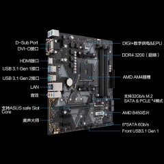 华硕 PRIME 台式机电脑电竞游戏主板b450m小板支持AM4 锐龙R5 2600 R7 2700 B450M-A/B450M-K