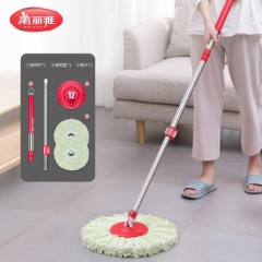 美丽雅拖把 原装手压甩水拖帕旋转拖把杆加速杆加厚拖头干湿两用懒人拖 单位:套