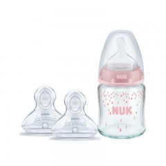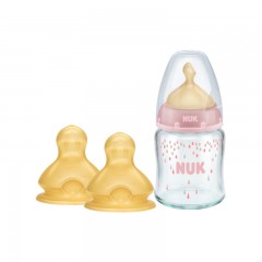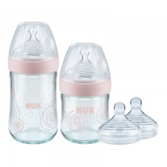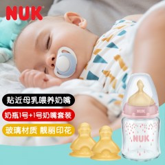 NUK 自然母感宽口玻璃奶瓶奶嘴3件套0-6个月初生婴儿奶瓶套装