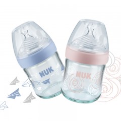 NUK 自然母感120ml宽口玻璃奶瓶带初生型0-6个月S号或M号