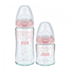 NUK 宽口径玻璃奶瓶240ml/120ml+(0-6个月小圆孔)硅胶奶嘴套装
