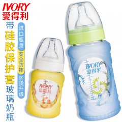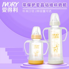 爱得利 婴儿奶瓶标准口径晶钻带保护套手柄玻璃奶瓶240ML防摔A93