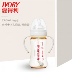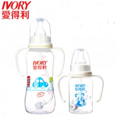 爱得利 玻璃奶瓶中硼硅标准口径婴儿奶瓶带把柄直身设计250mL