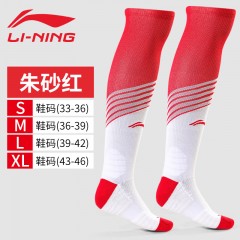 李宁 足球袜长筒过膝袜毛巾底防滑专业训练运动比赛抗菌长袜子 朱砂红-缓震防滑透气抗菌 XL 单位:双
