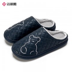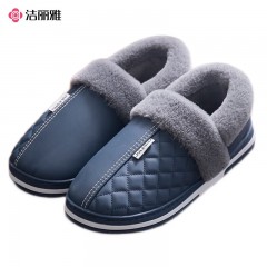 洁丽雅 防水棉拖鞋女冬季室内家居防滑情侣居保暖外穿皮拖鞋男冬天棉鞋 藏青 44-45(适合43-44码) 单位:双