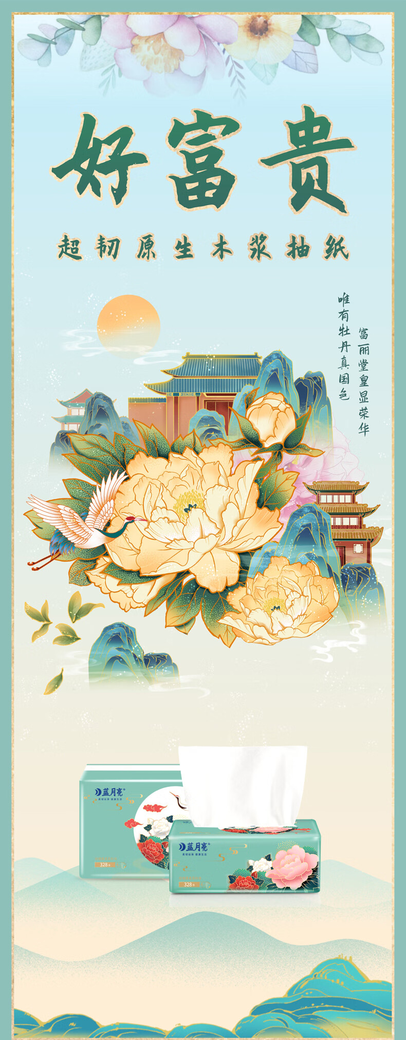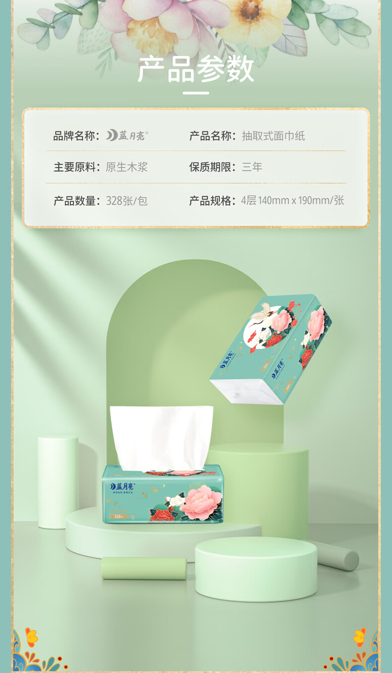 商品名称:蓝月亮好富贵抽纸4层82抽 20包整箱