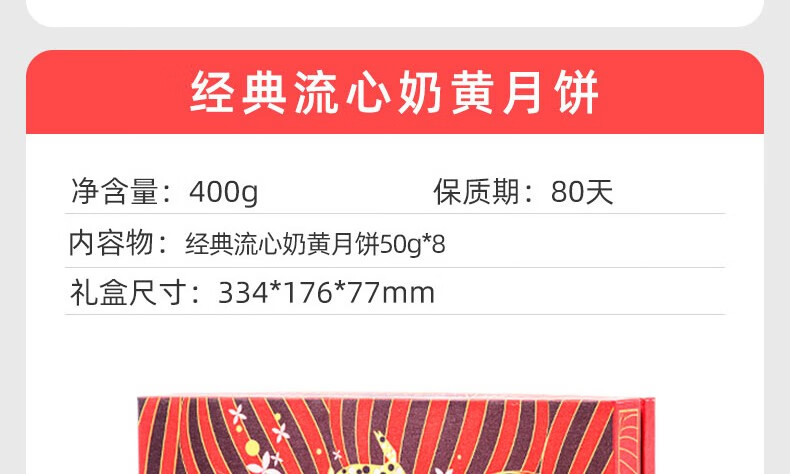 商品名称:锦华礼月饼礼盒 流心奶黄月饼 经典流心奶黄礼盒400g