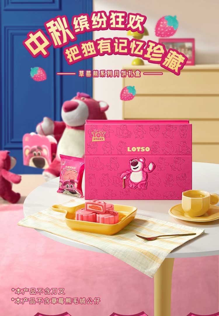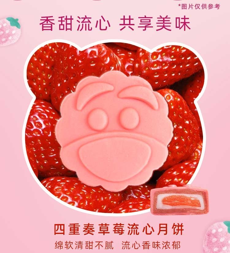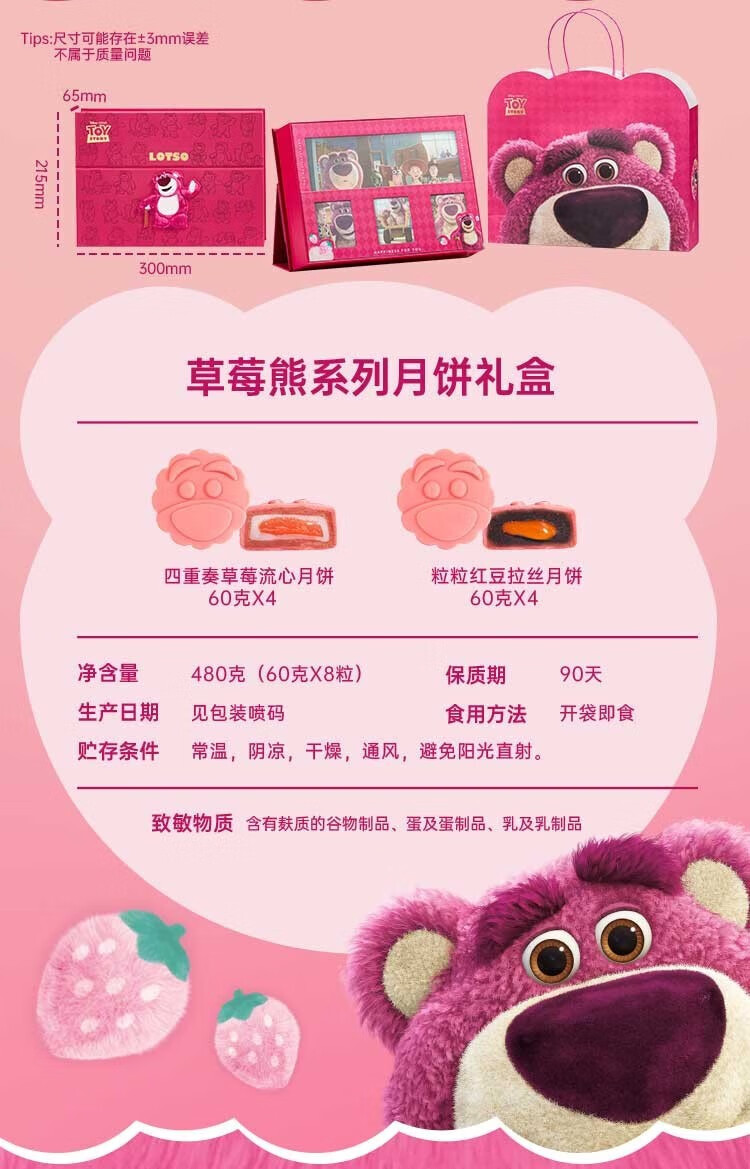 商品名称:迪士尼草莓熊系列月饼礼盒草莓流心月饼红豆月饼草莓熊系列月饼礼盒480g/盒