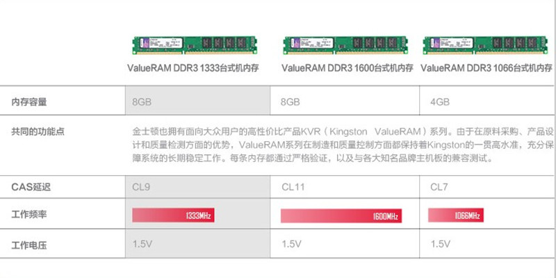 商品名称:金士顿 台式机内存条4G兼容1333 4G DDR3 1600