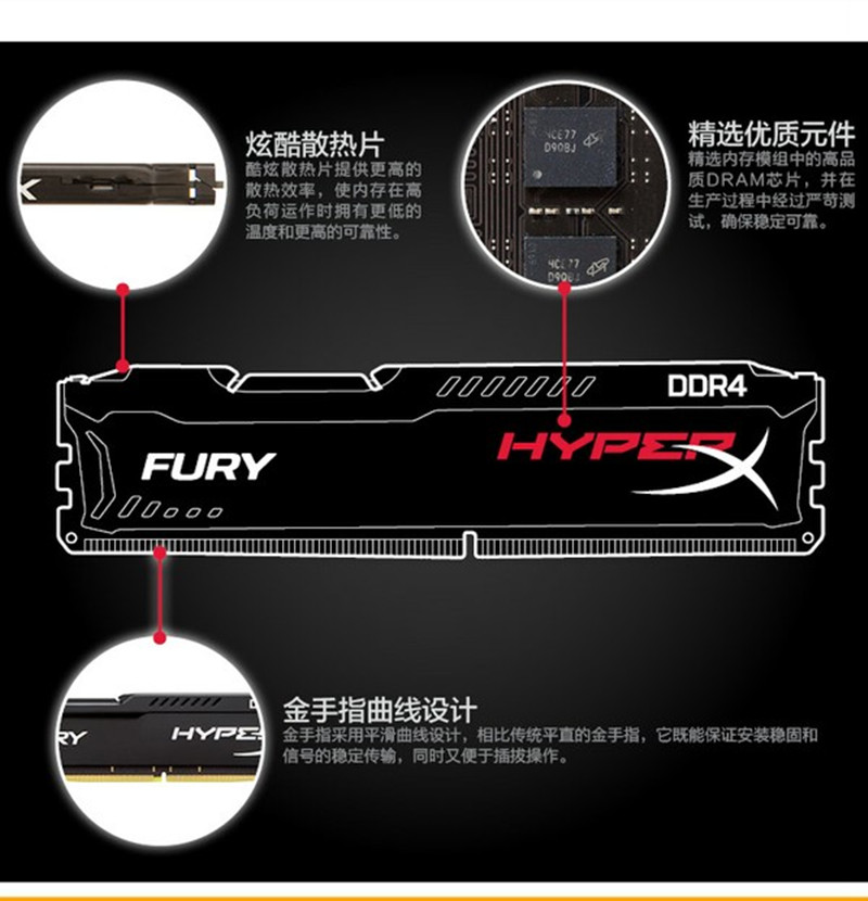 商品名称:金士顿 骇客神条 台式电脑内存条1.2V 8G DDR4 2400 2666