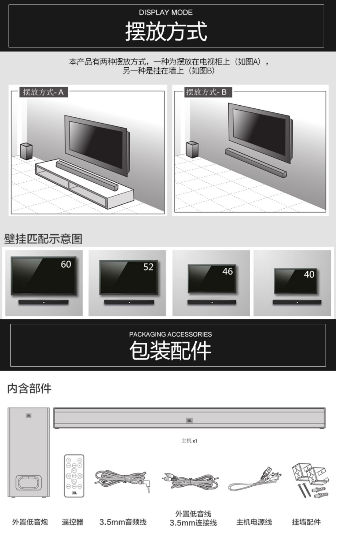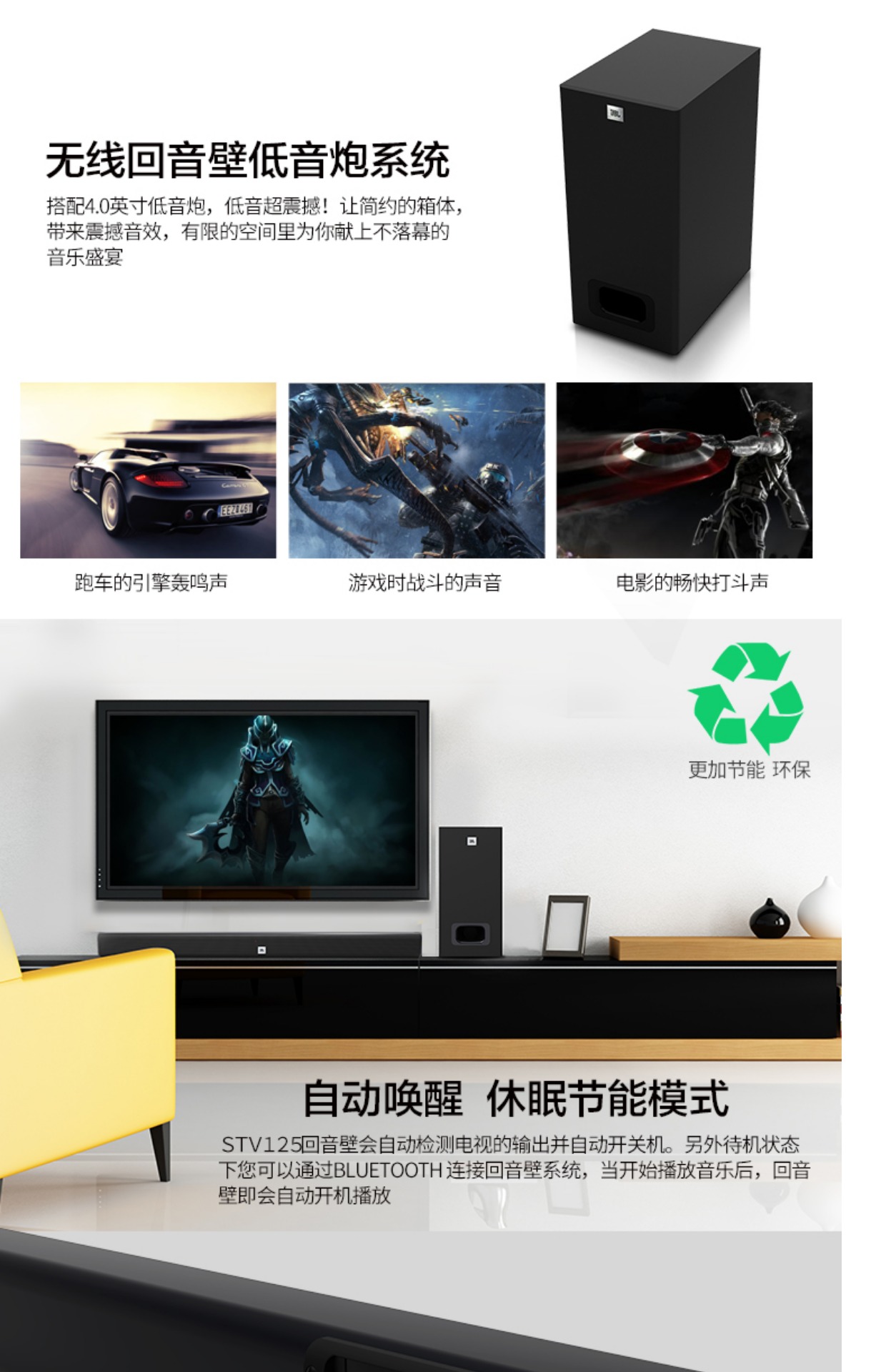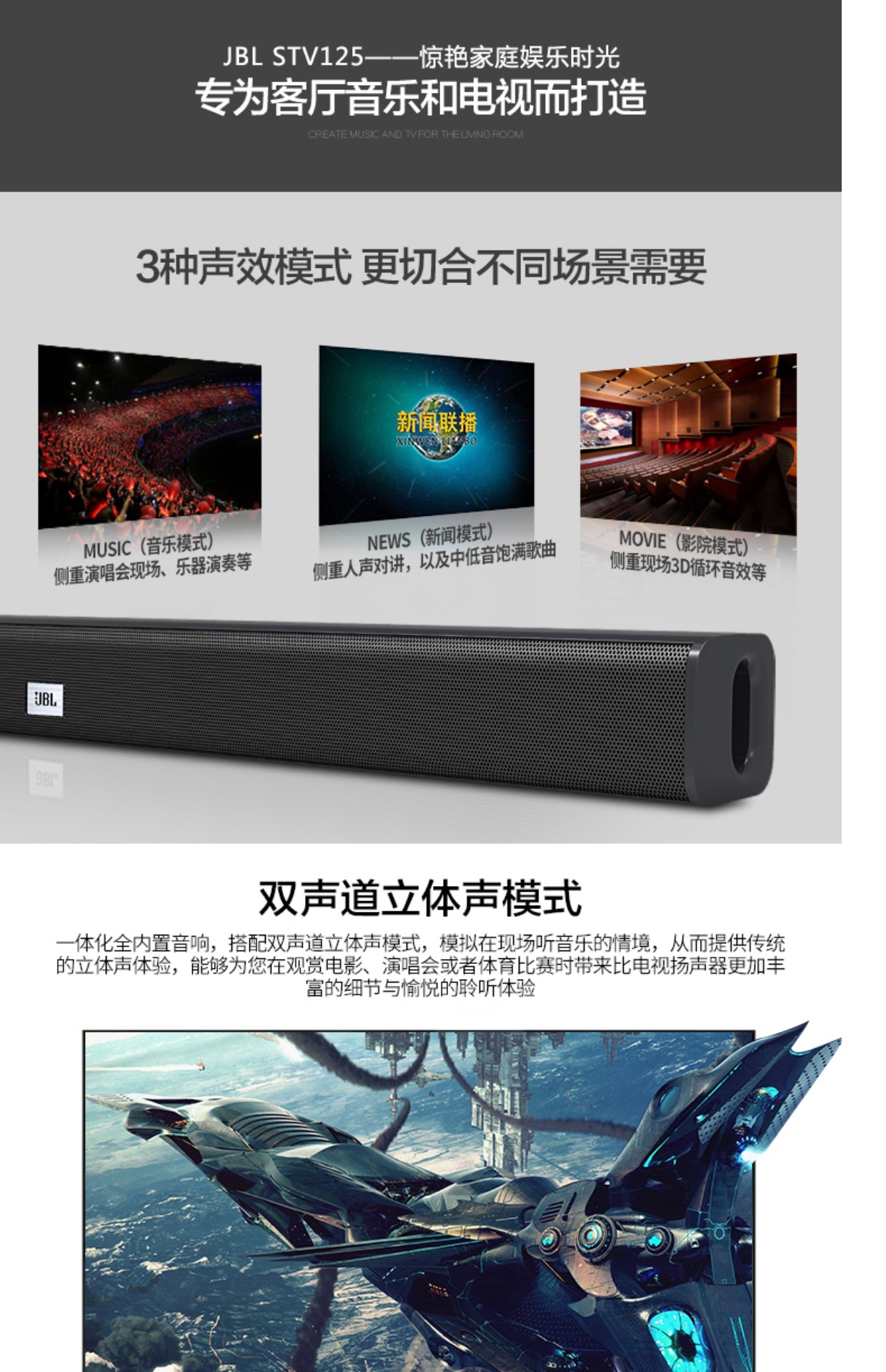 商品名称:JBL 无线蓝牙音响低音炮电视回音壁 STV125