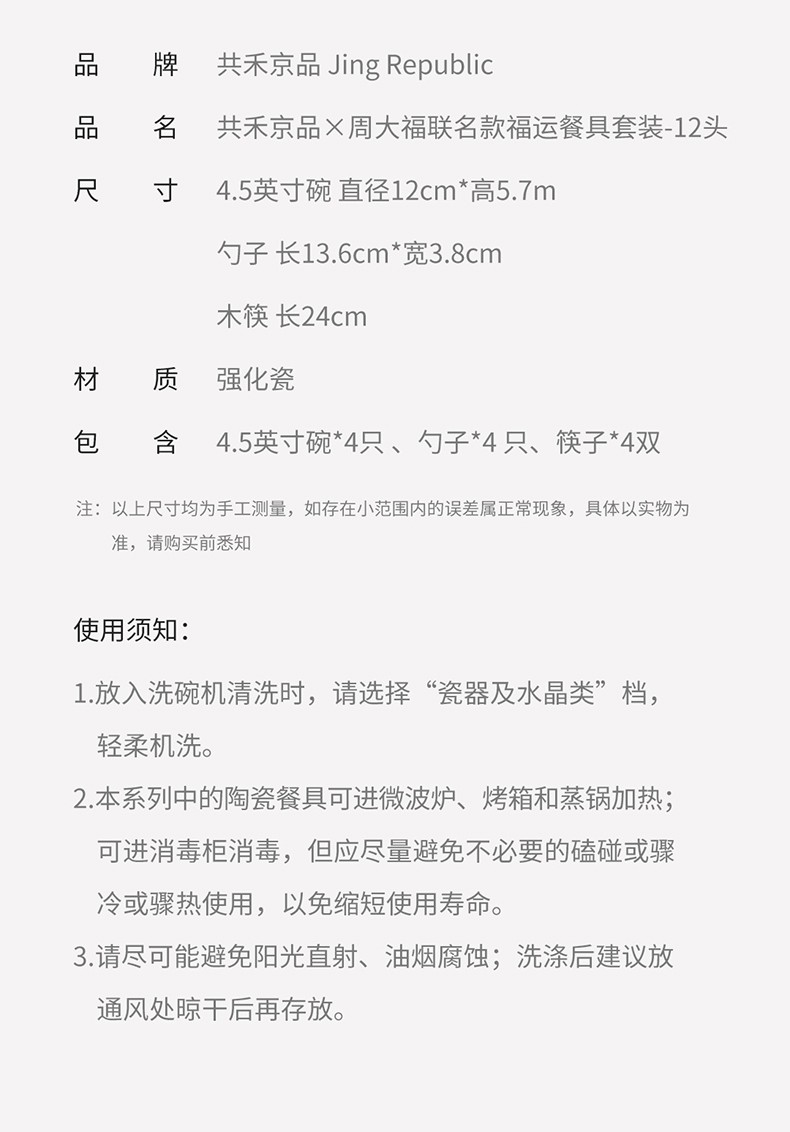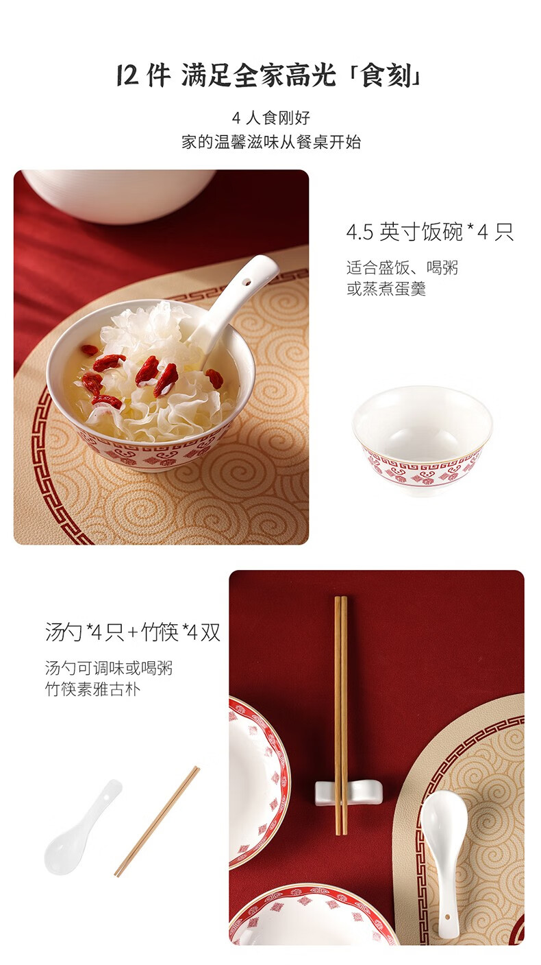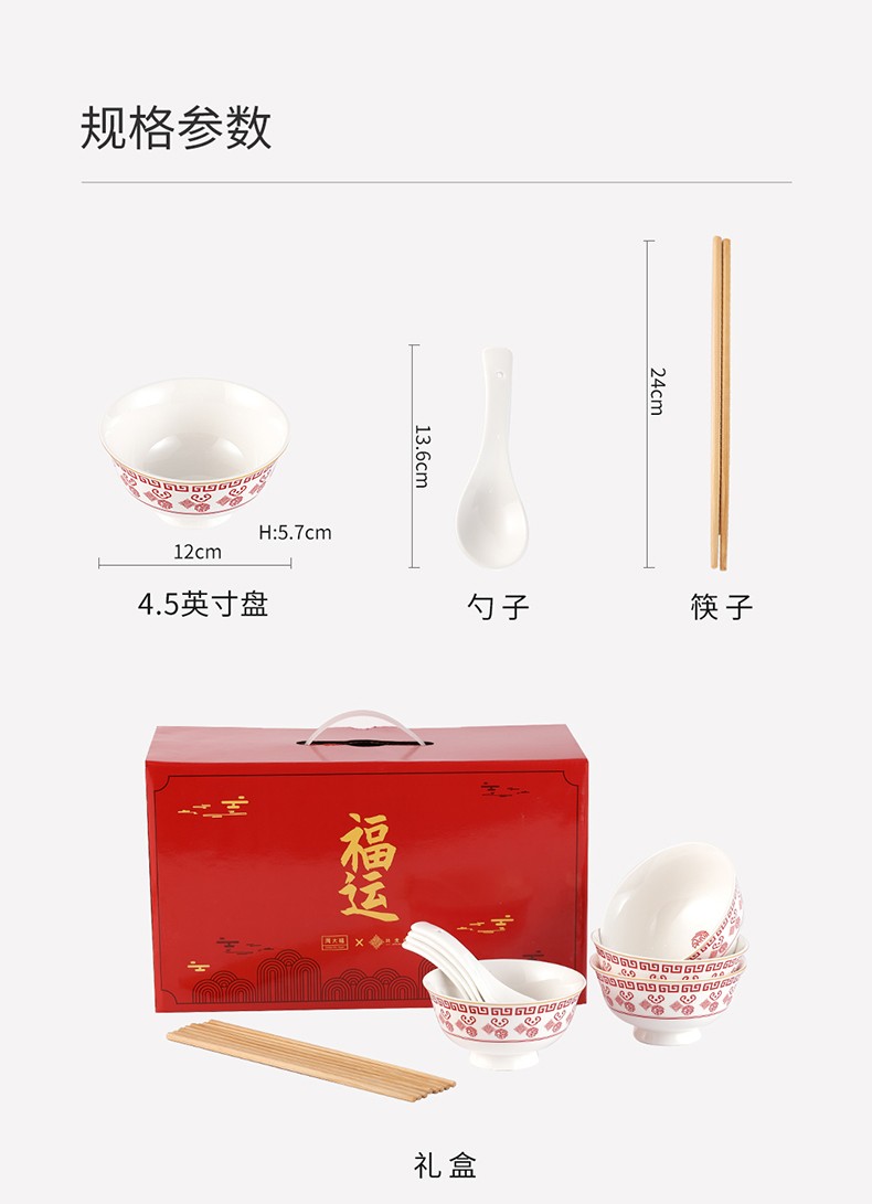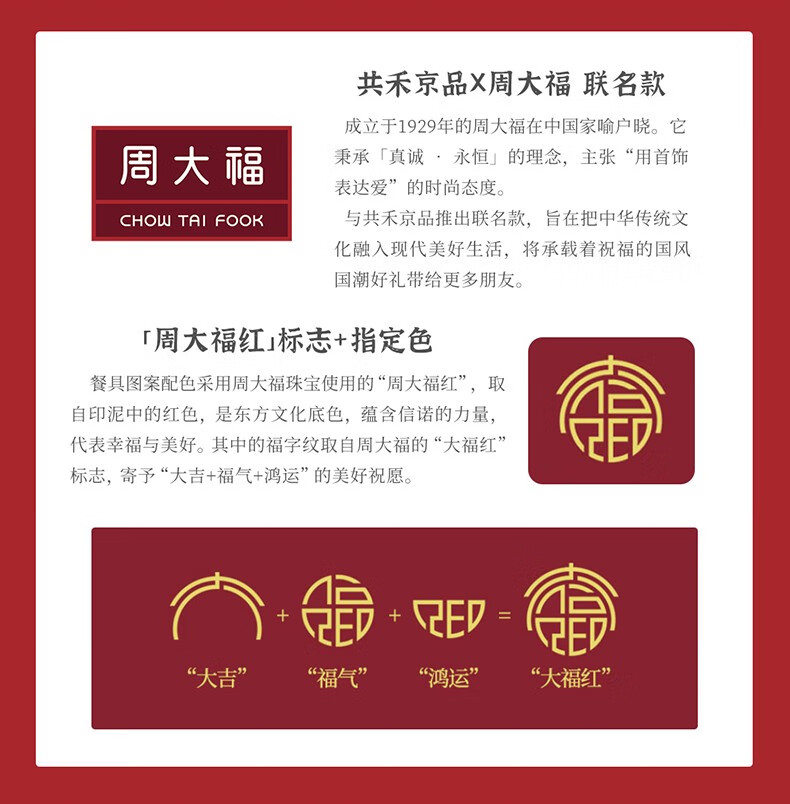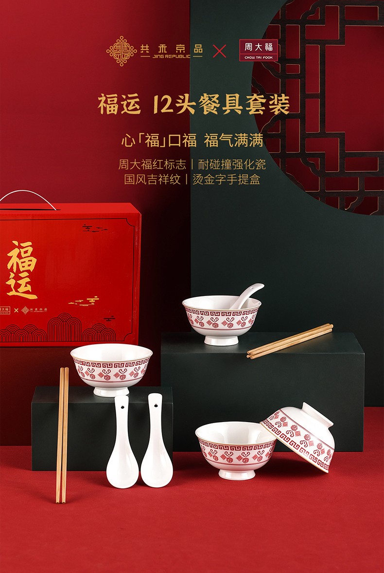 商品名称:共禾京品 周大福联名福运12头餐具礼盒套装高颜值碗碟盘 红色