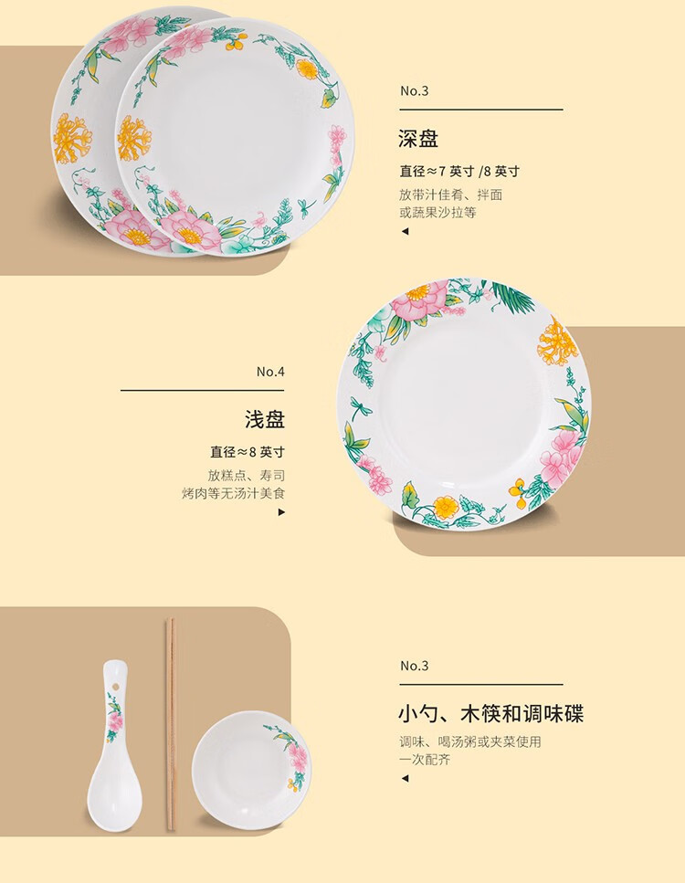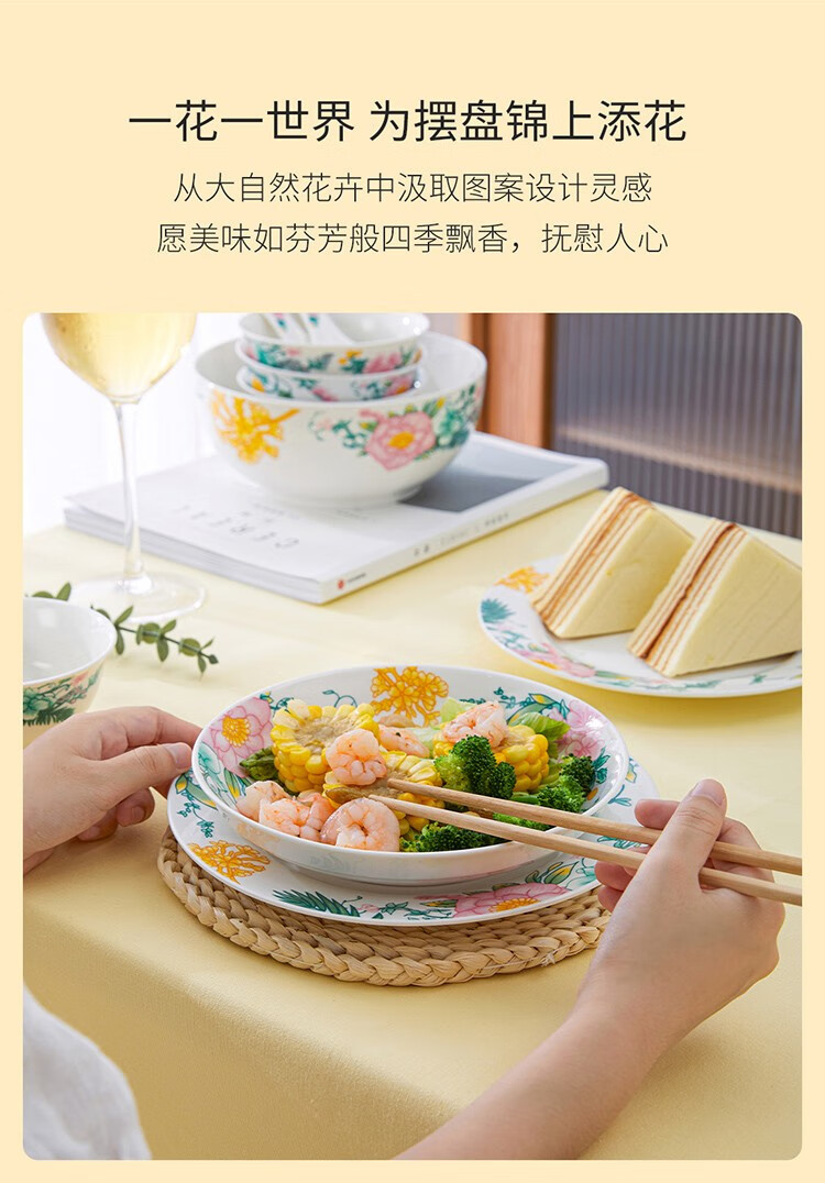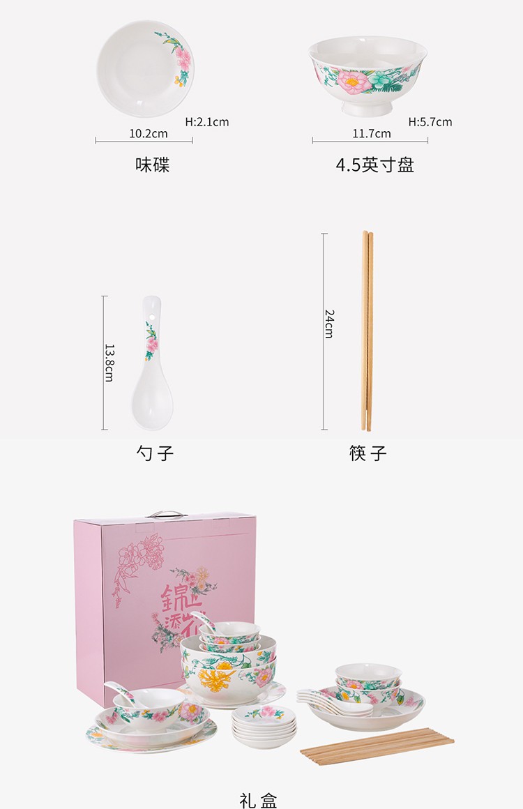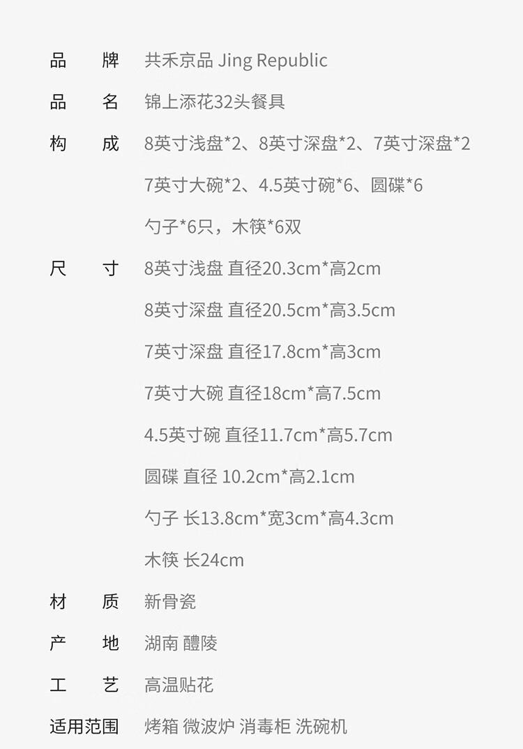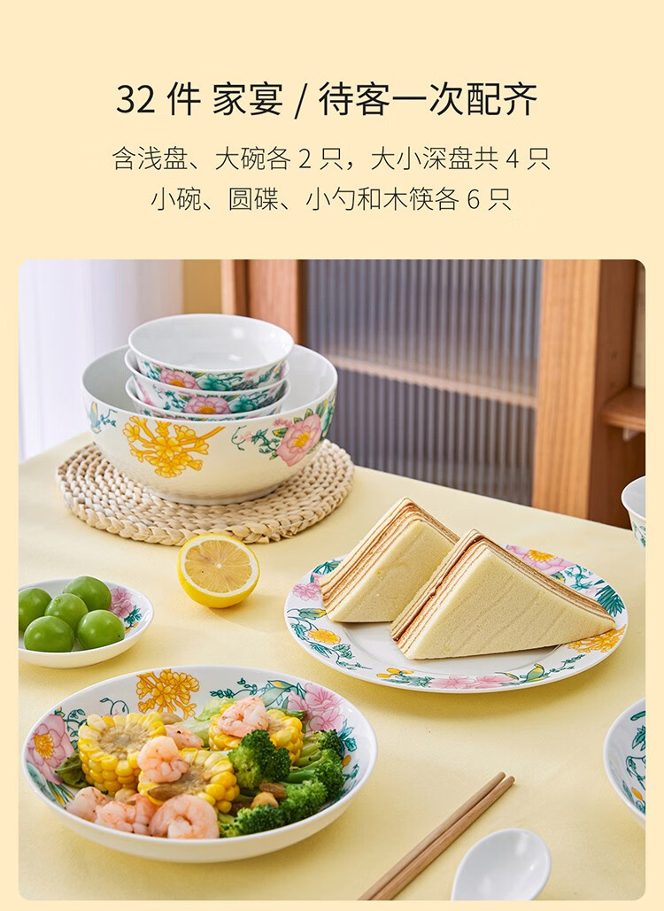商品名称:共禾京品 锦上添花高颜值餐具32头家用碗盘勺筷礼盒套装
