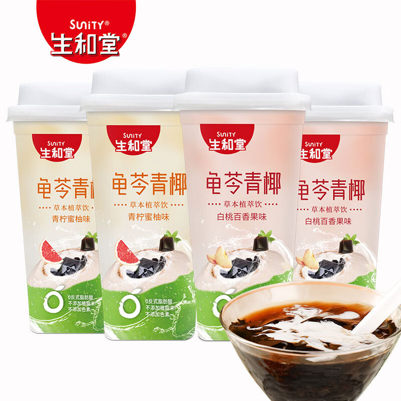 生和堂 可吸龟苓膏椰浆果味龟苓饮烧仙草低糖零食下午茶390g/瓶 百香果味2杯+蜜柚味2杯 单位:组