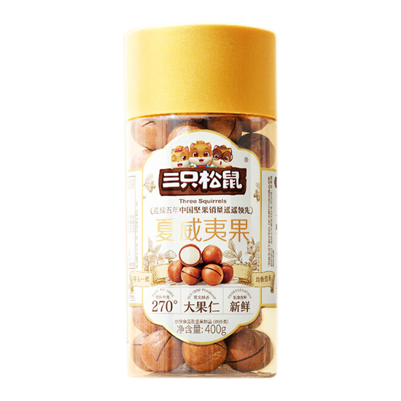 商品名称:三只松鼠 罐装夏威夷果 奶油味坚果炒货干果家庭休闲零食小吃量贩装400g 单位:罐