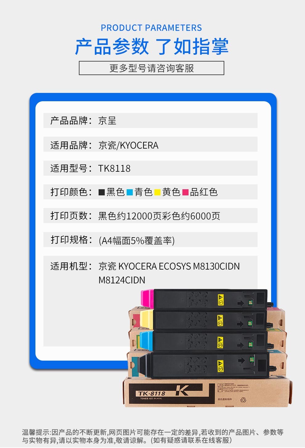 京呈适用京瓷TK-8118粉盒Ecosys M8124cidn墨粉盒京瓷M8124cidn打印机碳粉 TK8118 黑色墨粉盒 BK【含废粉盒】 单位:支