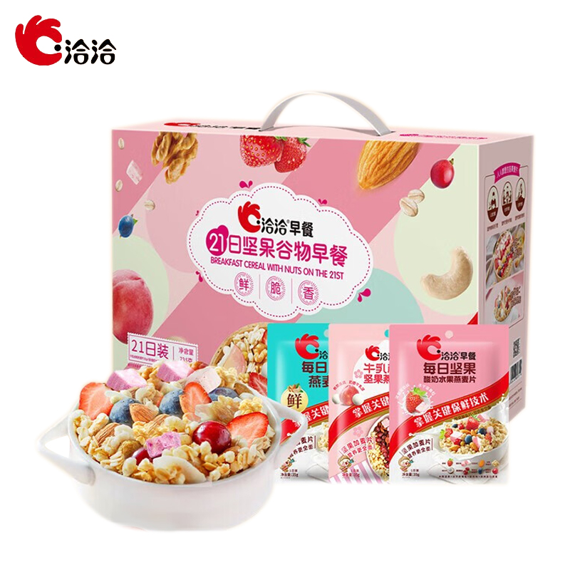 商品名称:洽洽 早餐每日坚果酸奶水果燕麦片735g即食代餐孕妇小孩 21日装 1盒 单位:盒