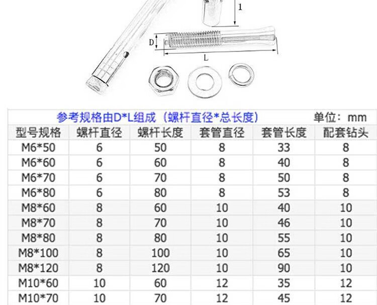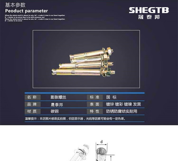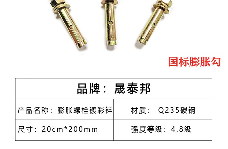 商品名称:晟泰邦 膨胀螺栓镀彩锌 10X100mm 单位:个