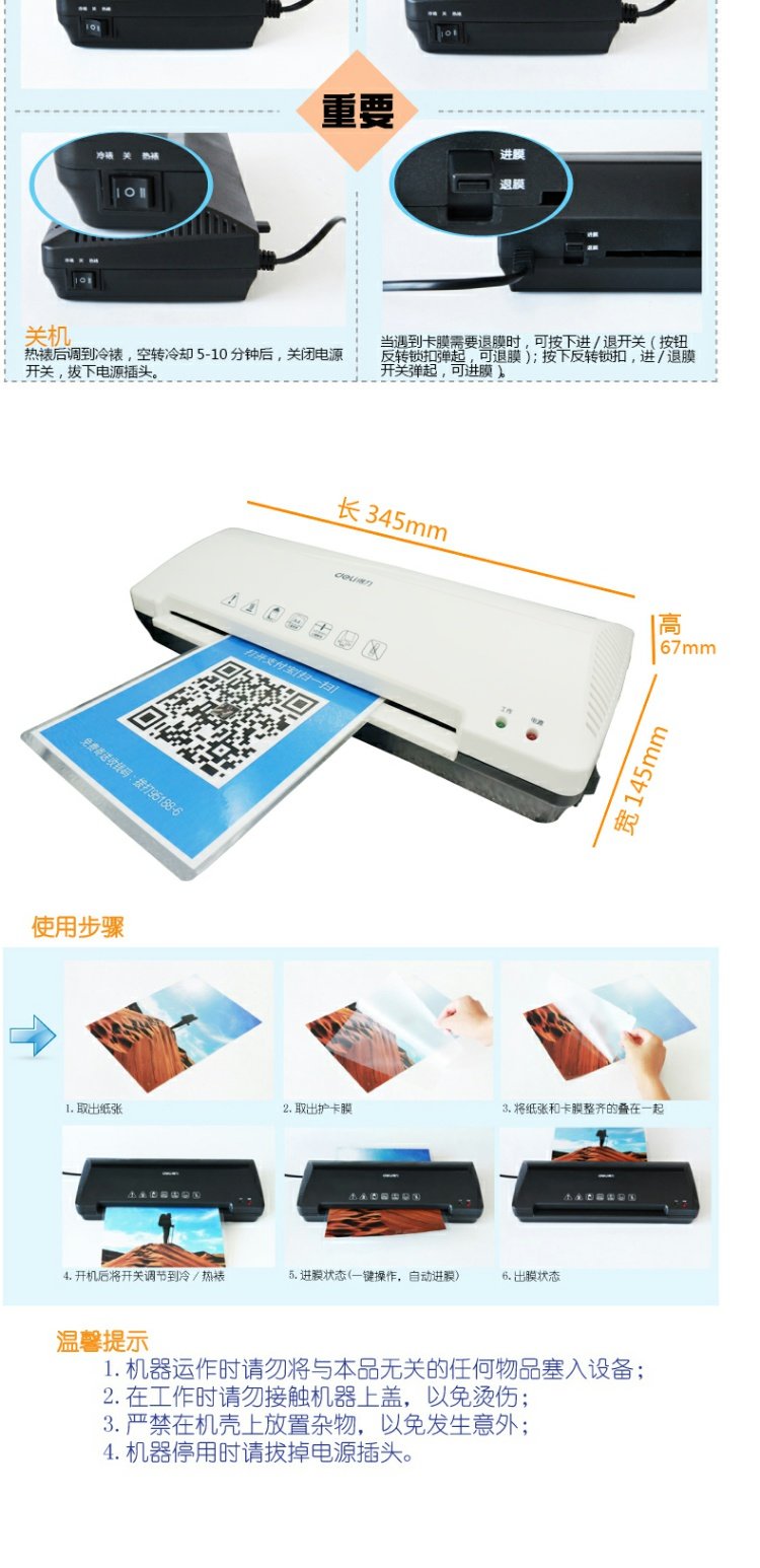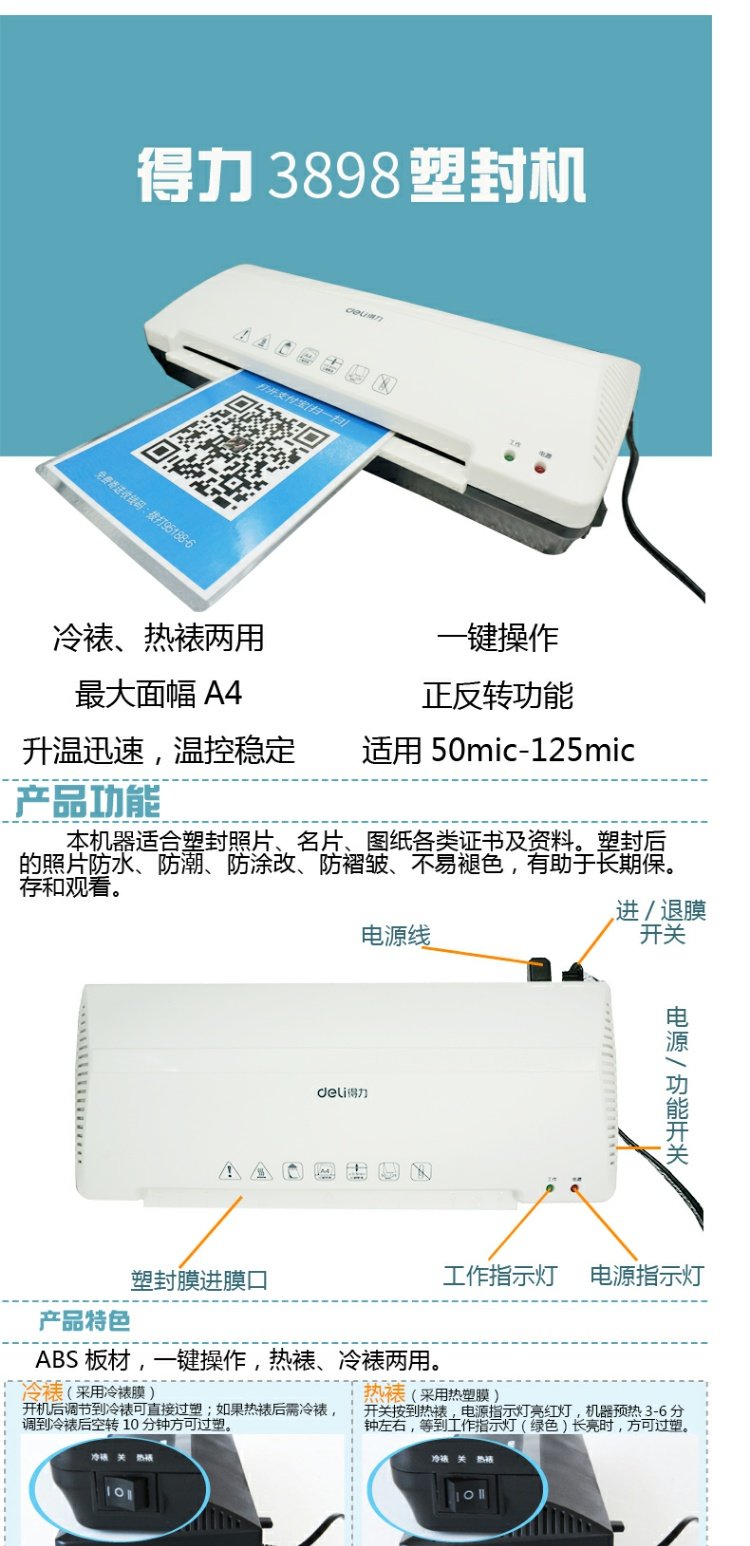 商品名称:得力 塑封机过塑机a4图纸照片冷热裱覆膜机过胶机 3898