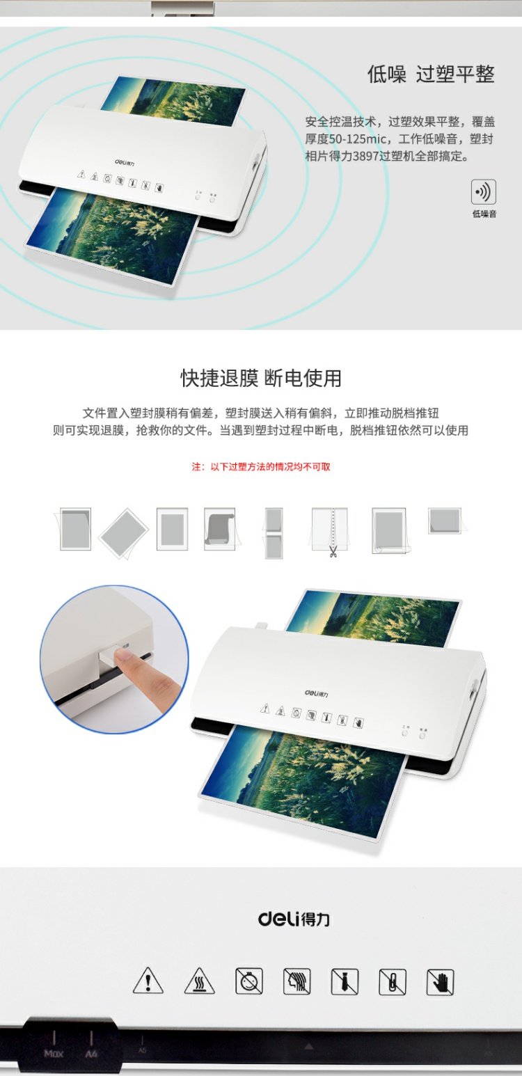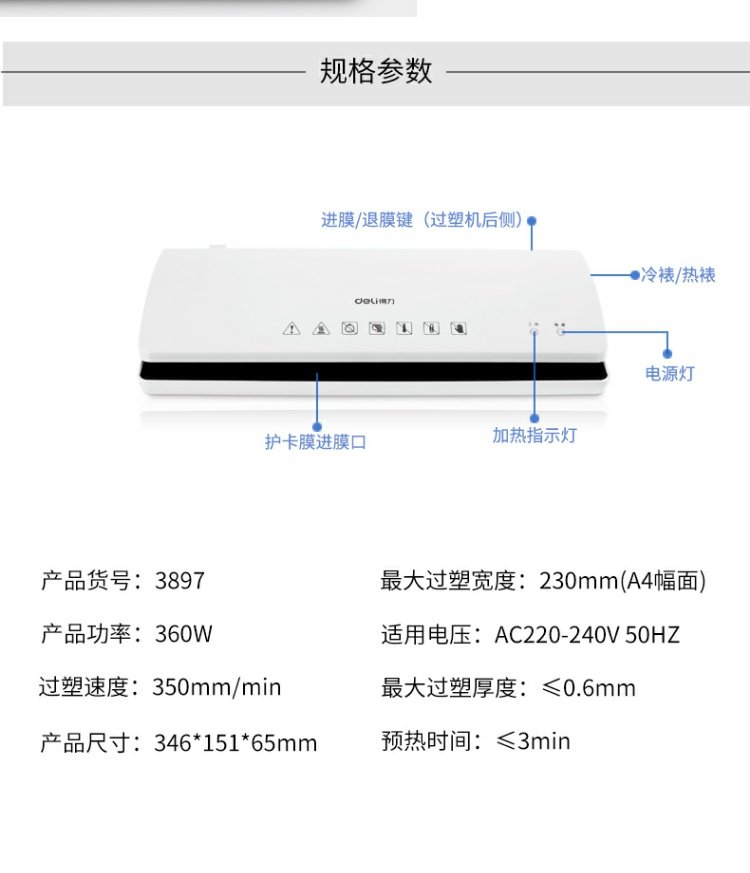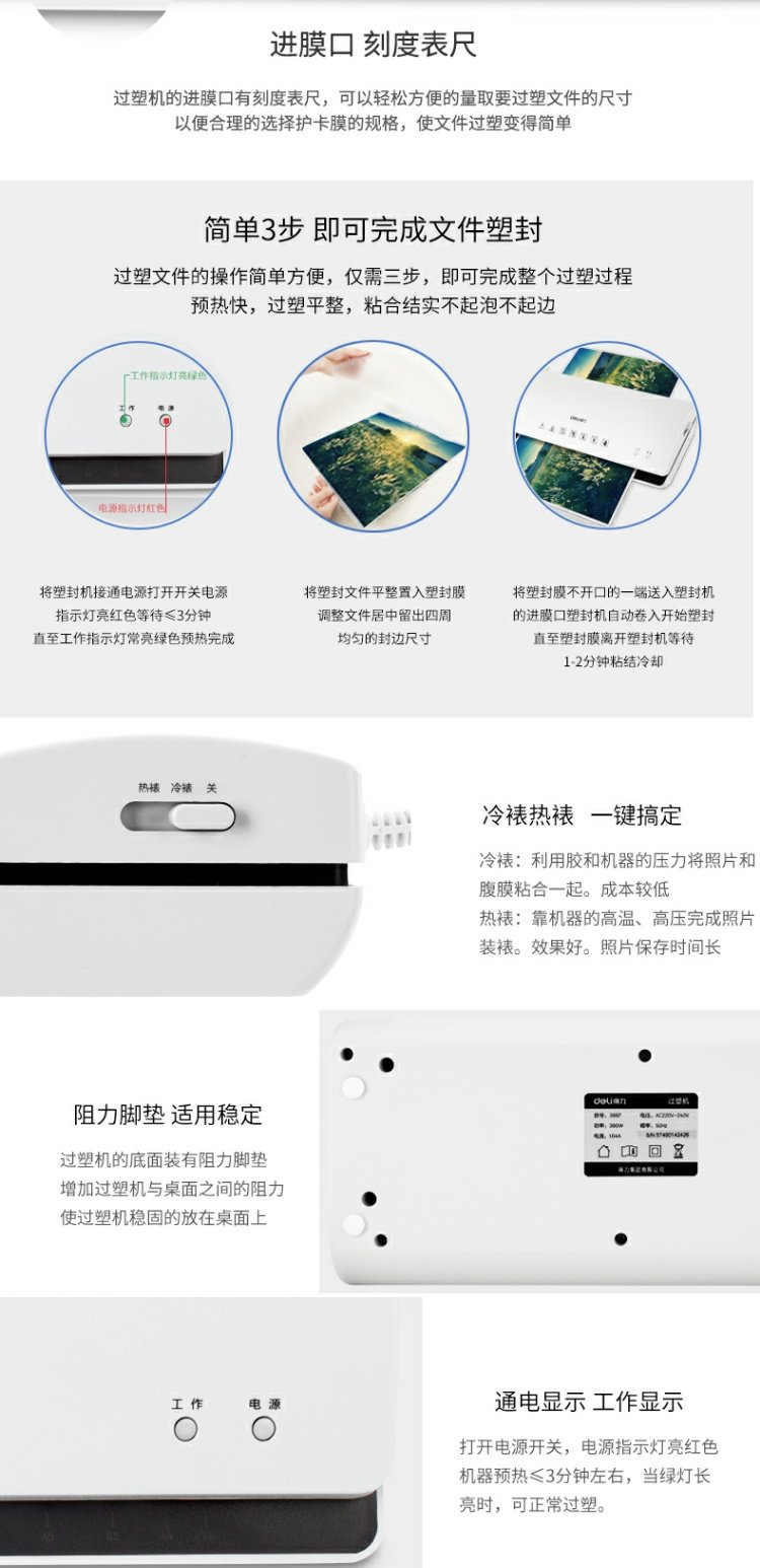 商品名称:得力 塑封机家用过塑机覆膜机照片压膜机A4 3897