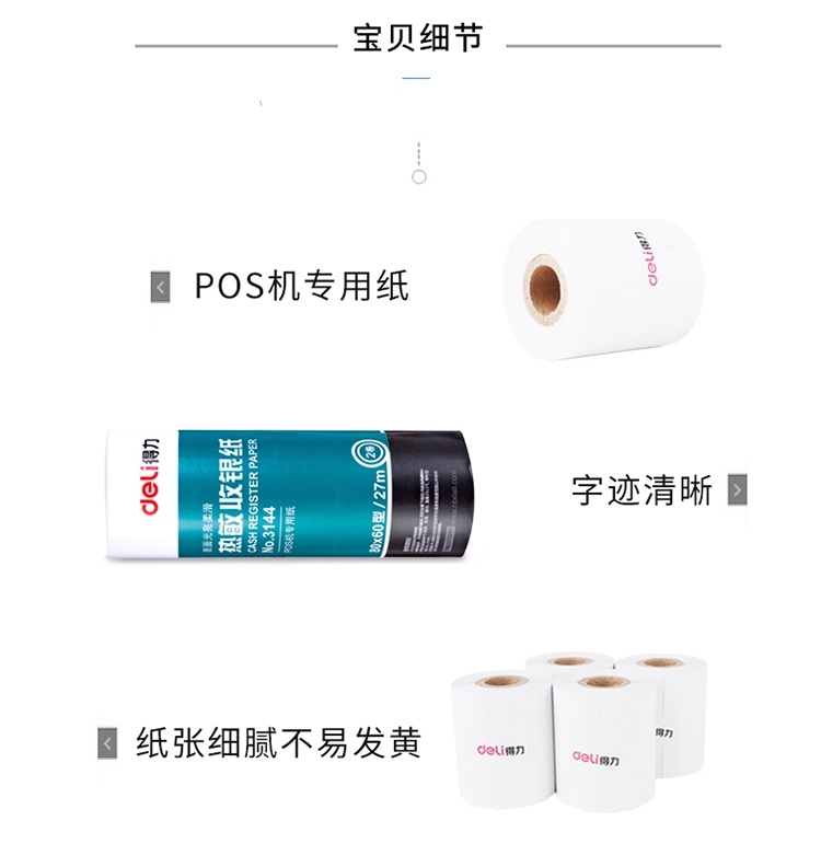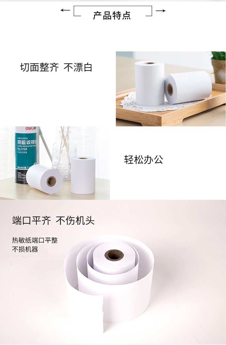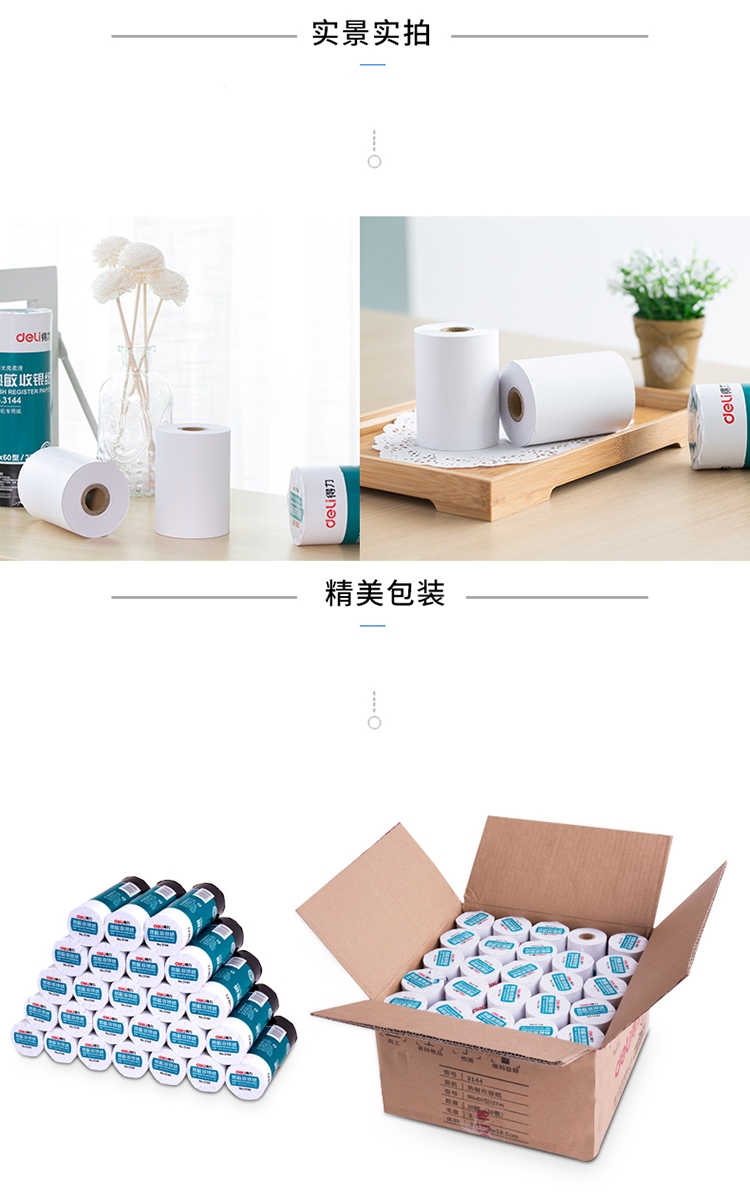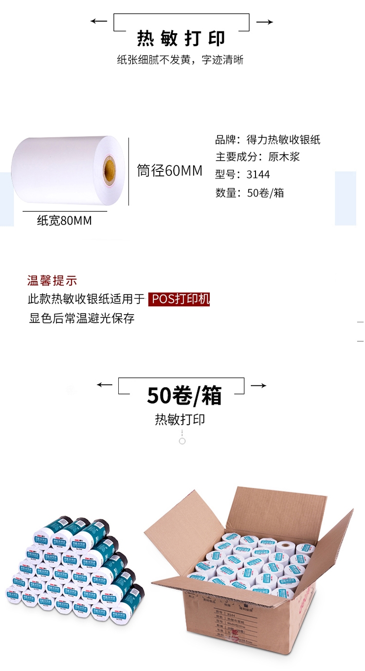 商品名称:得力 3144 80mm*60mm热敏收银纸/收银机打印/超市小票打印纸50卷/箱3144