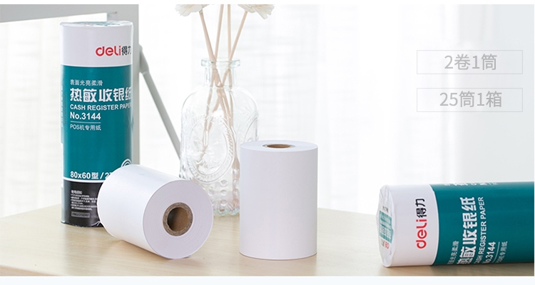 得力 3144 80mm*60mm热敏收银纸/收银机打印/超市小票打印纸50卷/箱3144