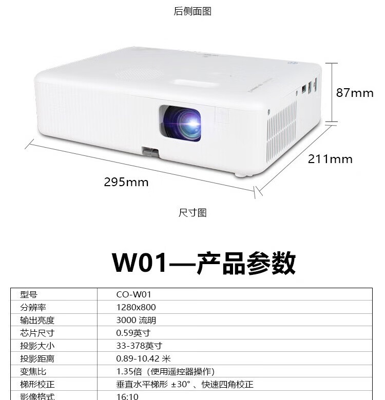 商品名称:晟泰邦 投影仪 办公投影机 高清宽屏 3000流明(配幕布) 单位:套