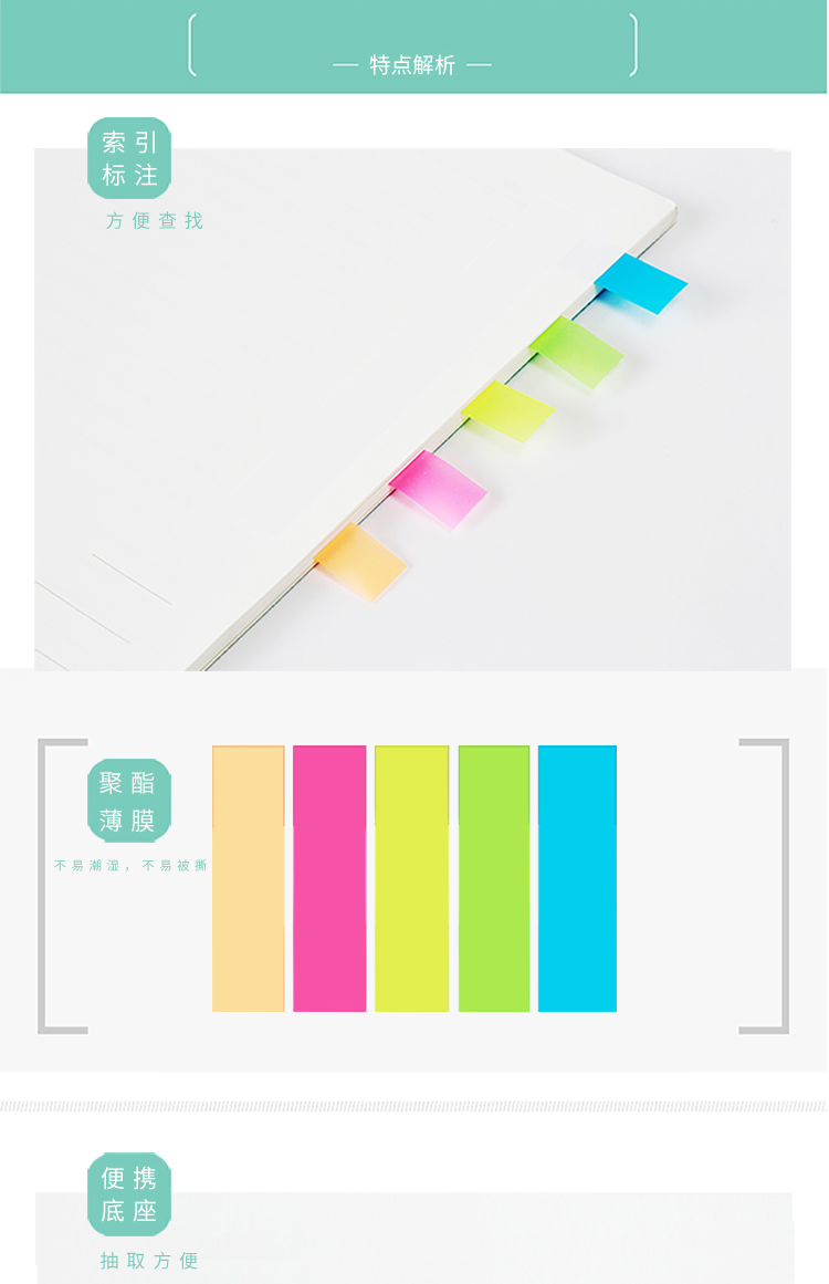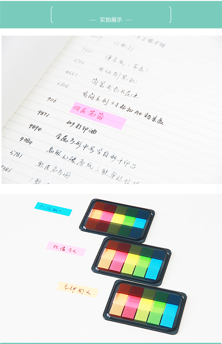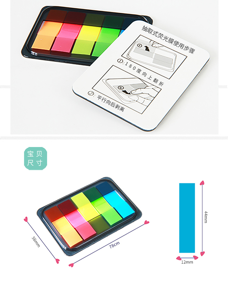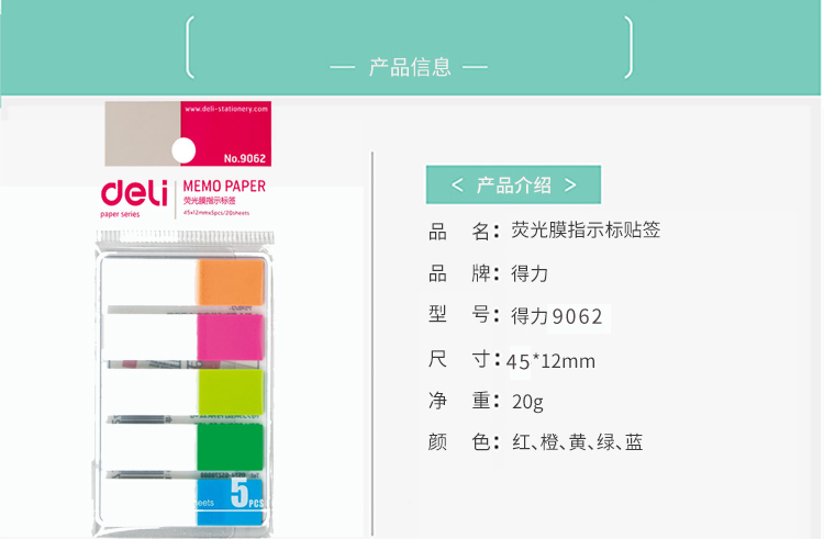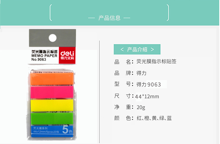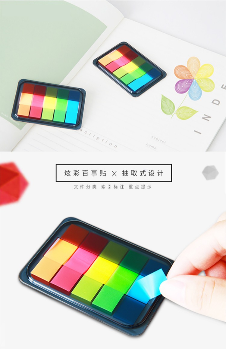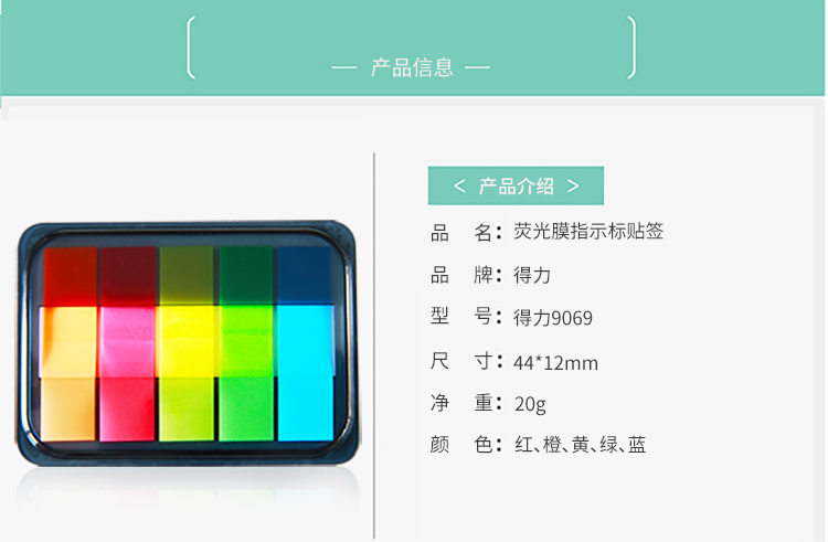 商品名称:得力 9060 百事帖记号便签纸便贴条荧光膜指示条分类指示贴单包抽取