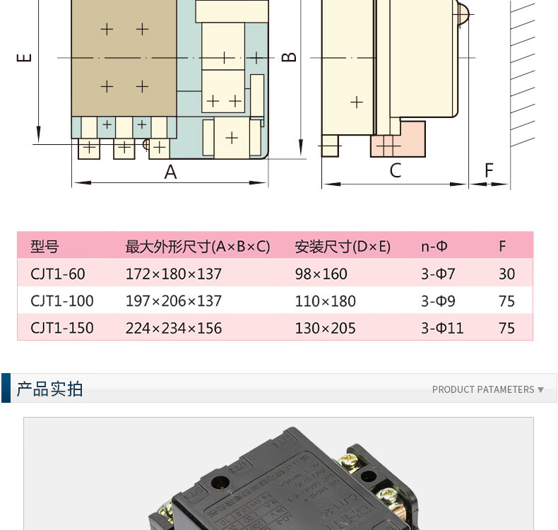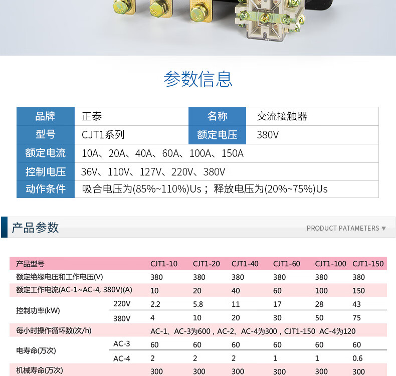 商品名称:正泰(CHINT)正泰CJT1交流接触器10 20 40 60 100 150单相220V三相380V CDC10 CJT1-60 AC380 单位:个