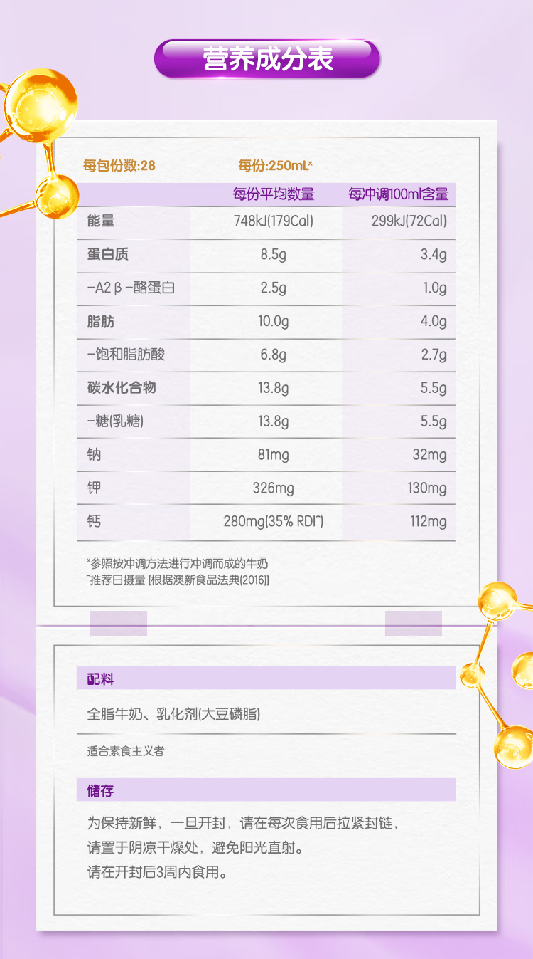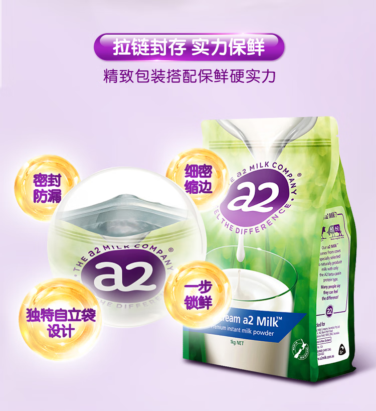 A2 高钙高蛋白速溶奶粉1kg/袋有效期至25年3月