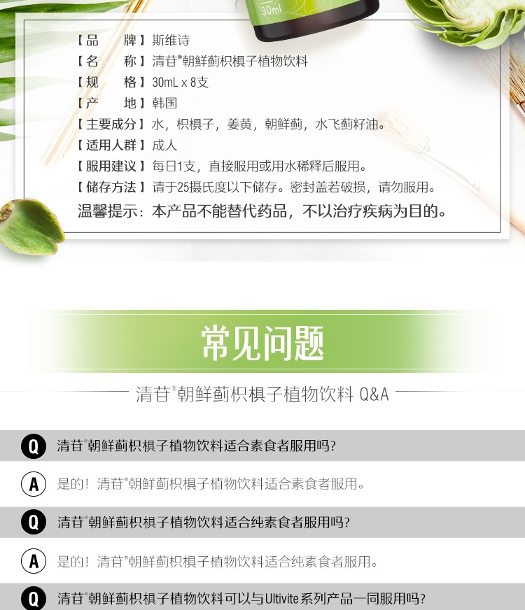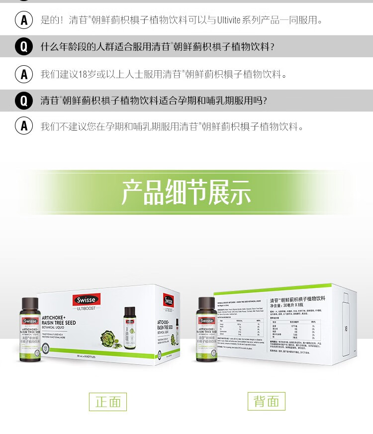 商品名称:Swisse斯维诗清苷朝鲜蓟枳椇子植物饮料30ml*8瓶