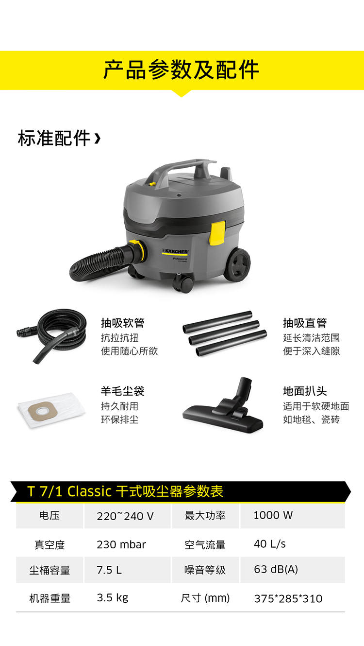 商品名称:卡赫/Karcher 真空吸尘器T7/1 家用商用超静音 欧洲原装进口