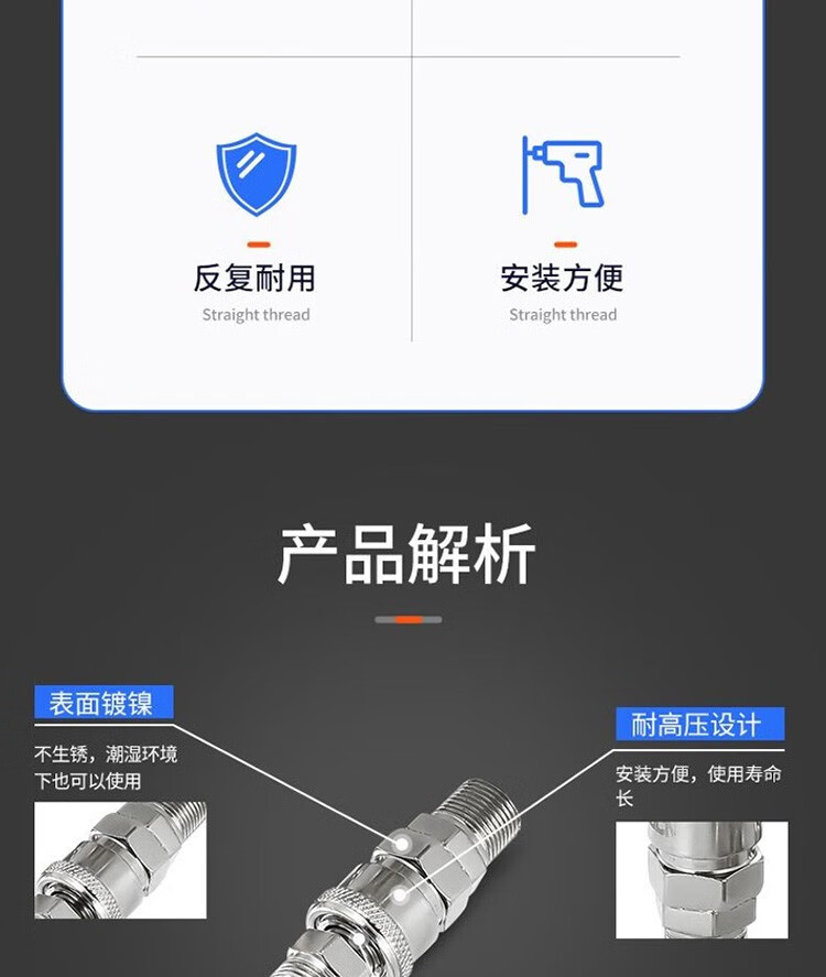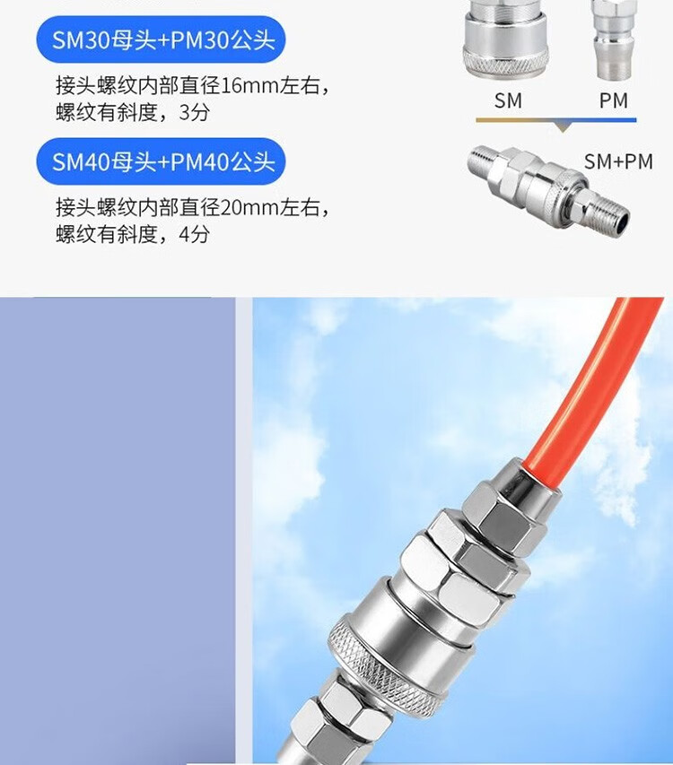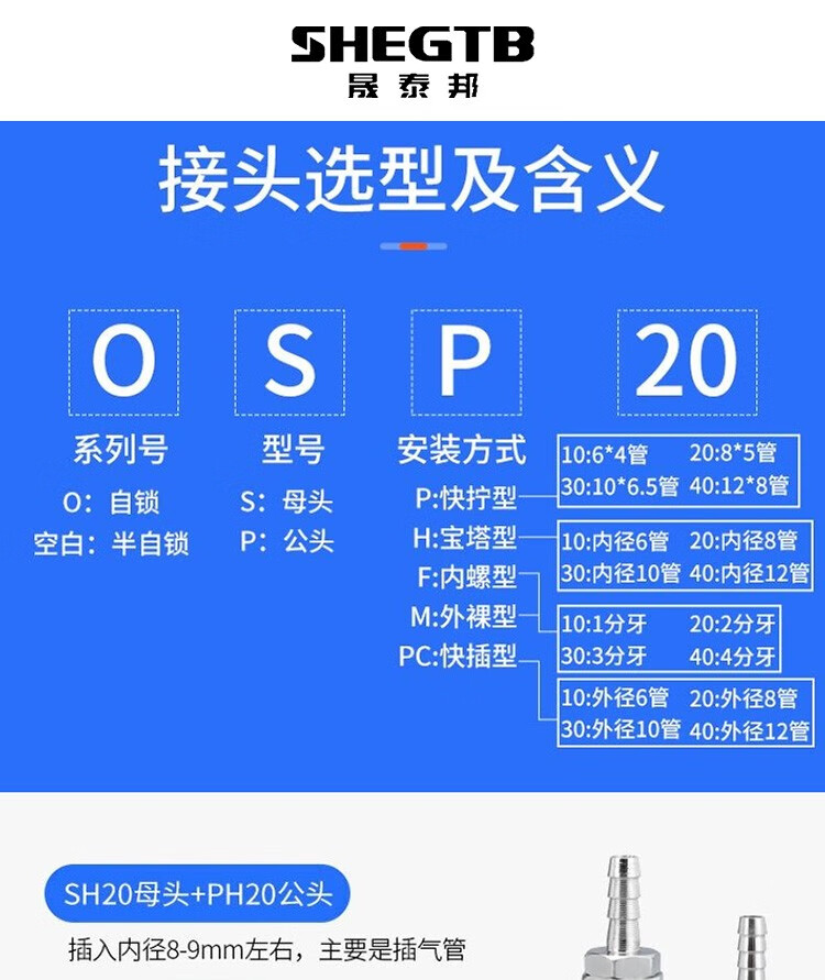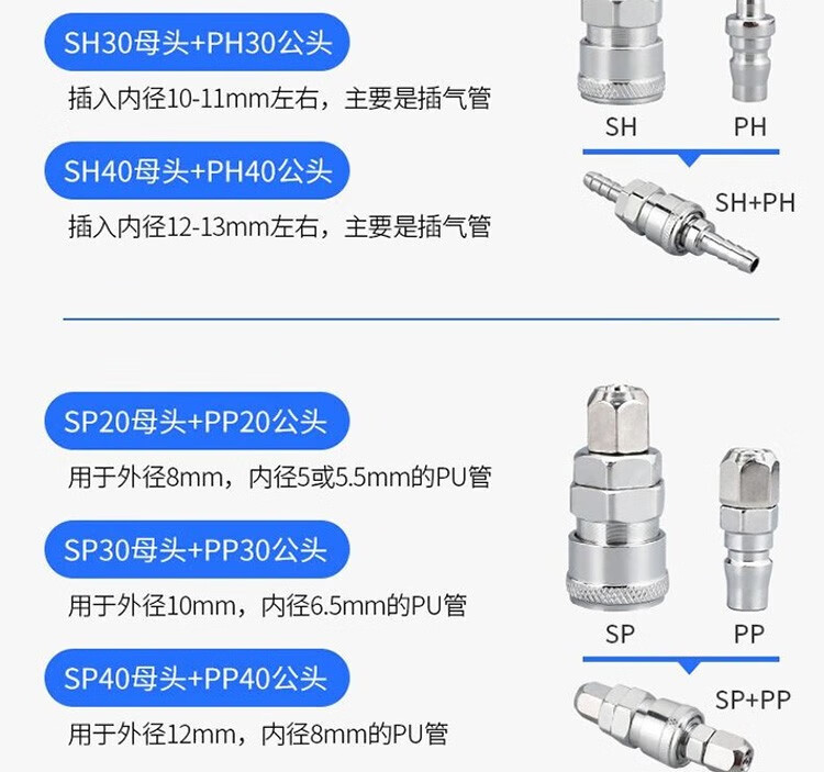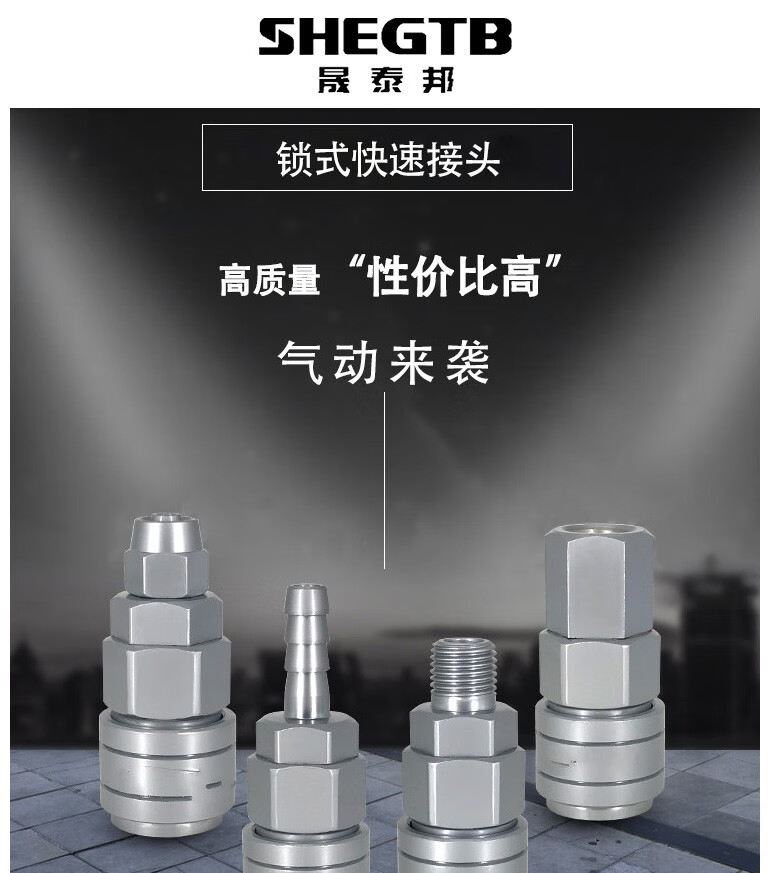 商品名称:晟泰邦 气管快速接头气泵空压机软管金属接头C式自锁快插公母头气动工具 公+母 接12x8mm管 单位:组