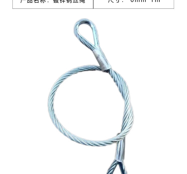 商品名称:晟泰邦 6mm8mm24mm 双扣 压制 镀锌钢丝绳 带油吊索具 铝压扣 压头 插编 压套 起重吊具 镀锌压制6mm*1m 单位:卷