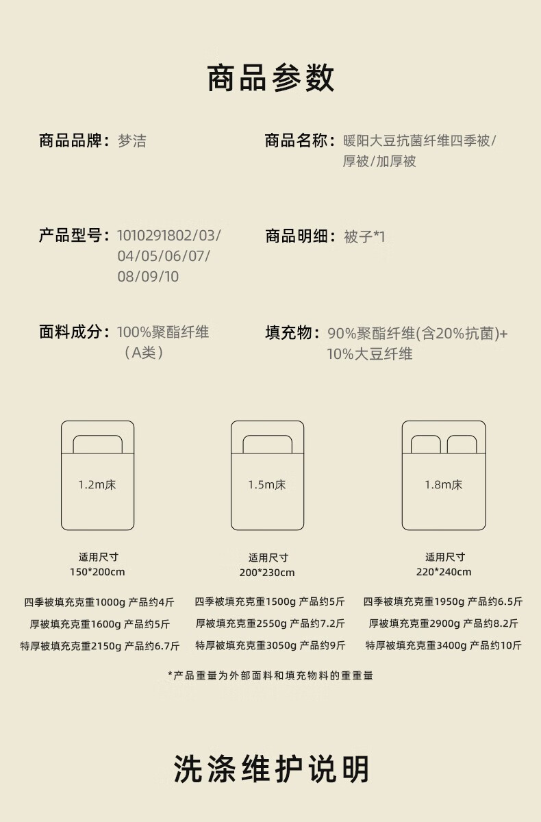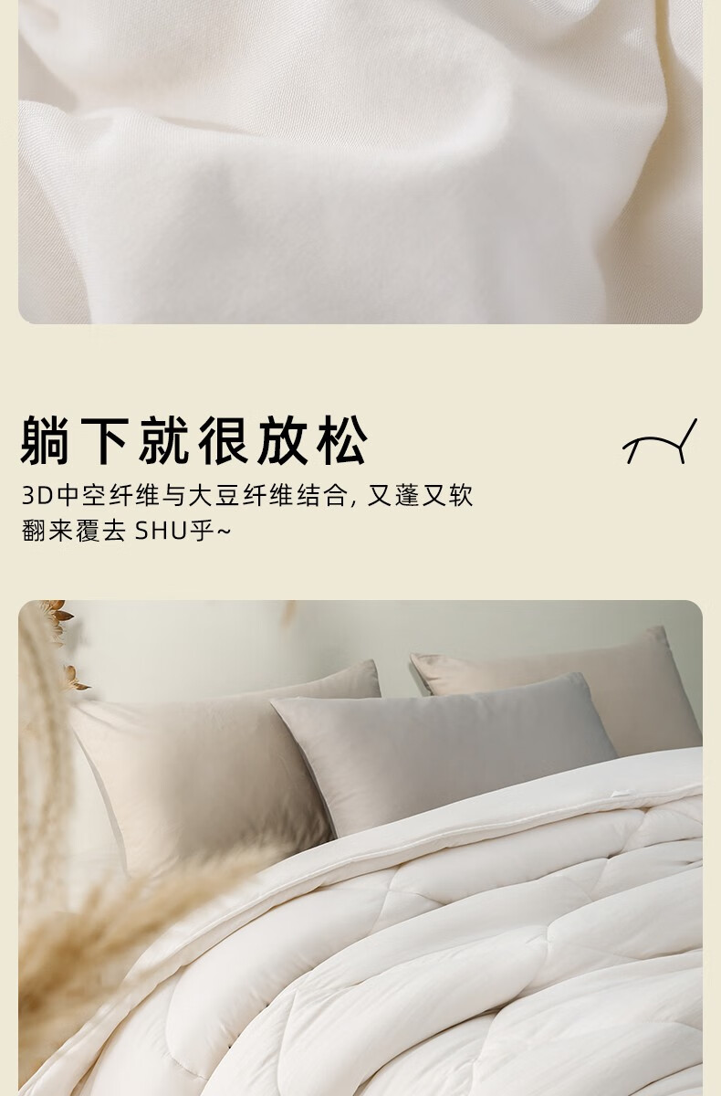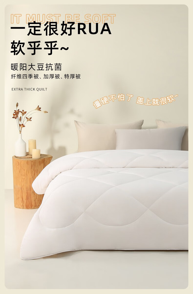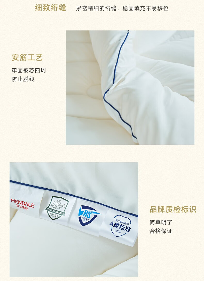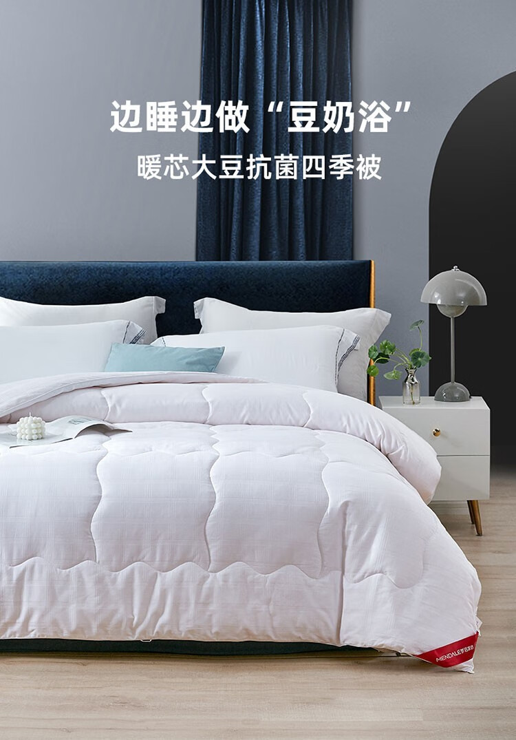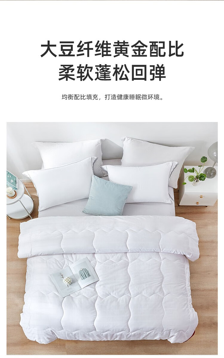 商品名称:梦洁家纺大豆被 A类面料抗菌纤维被芯四季通用秋冬加厚保暖被子宿舍单双人 【暖阳春秋被】10%大豆A类面料 150×200cm 单位:床