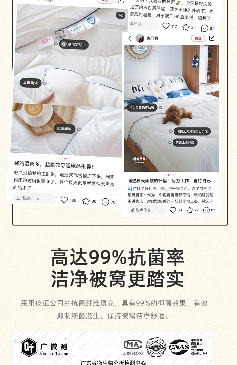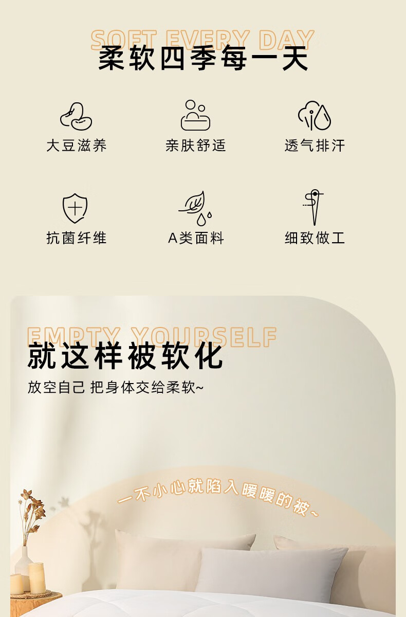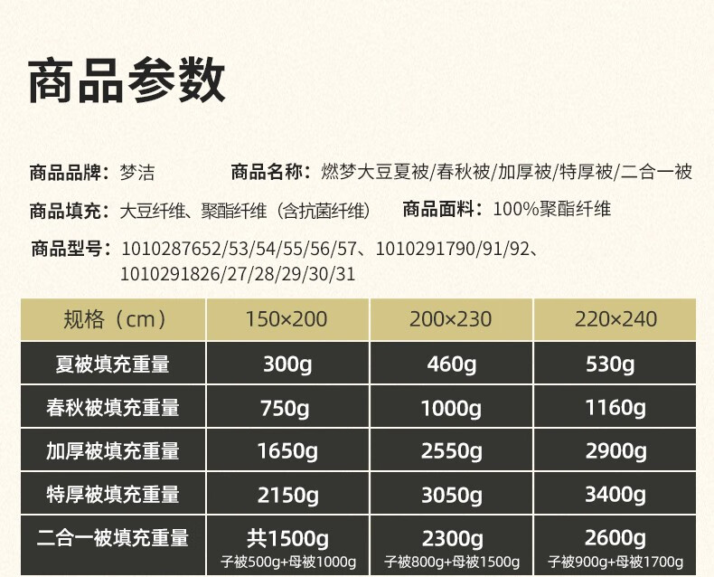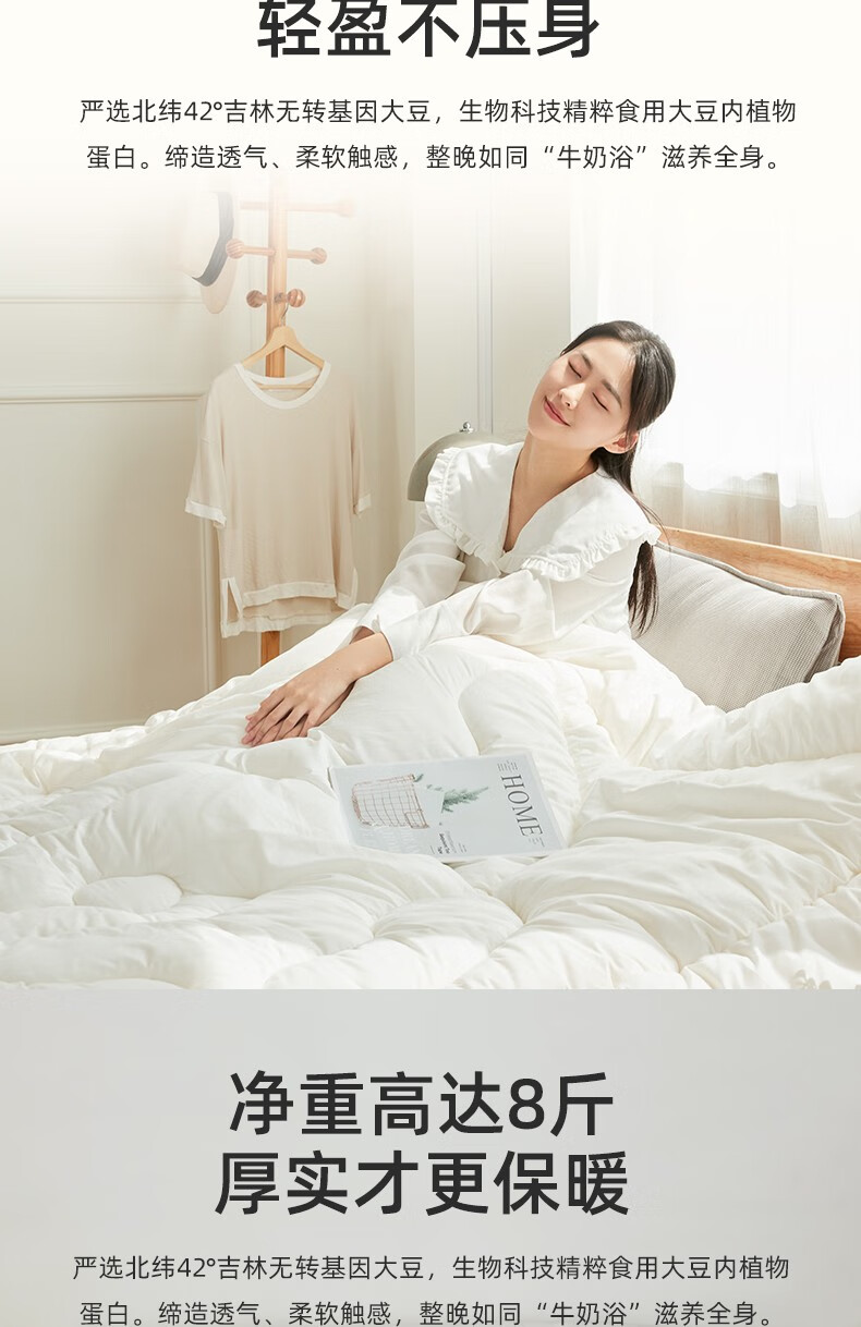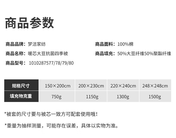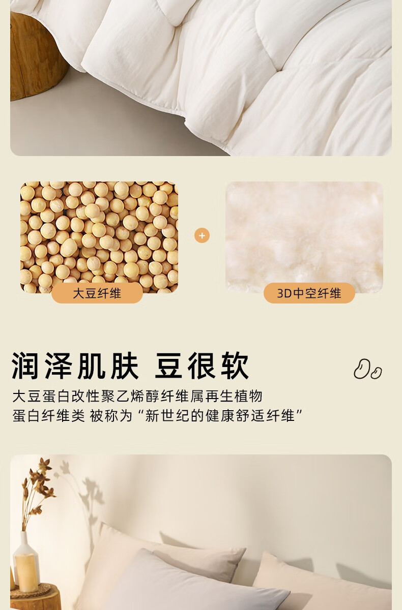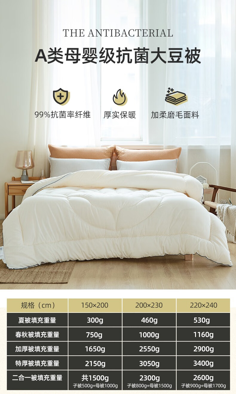 商品名称:梦洁家纺大豆被 A类面料抗菌纤维被芯四季通用秋冬加厚保暖被子宿舍单双人 【暖阳春秋被】10%大豆A类面料 150×200cm 单位:床