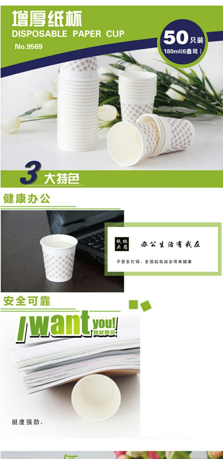 商品名称:得力 纸杯9569 加厚一次性纸杯 耐高温 180ml 50只/袋