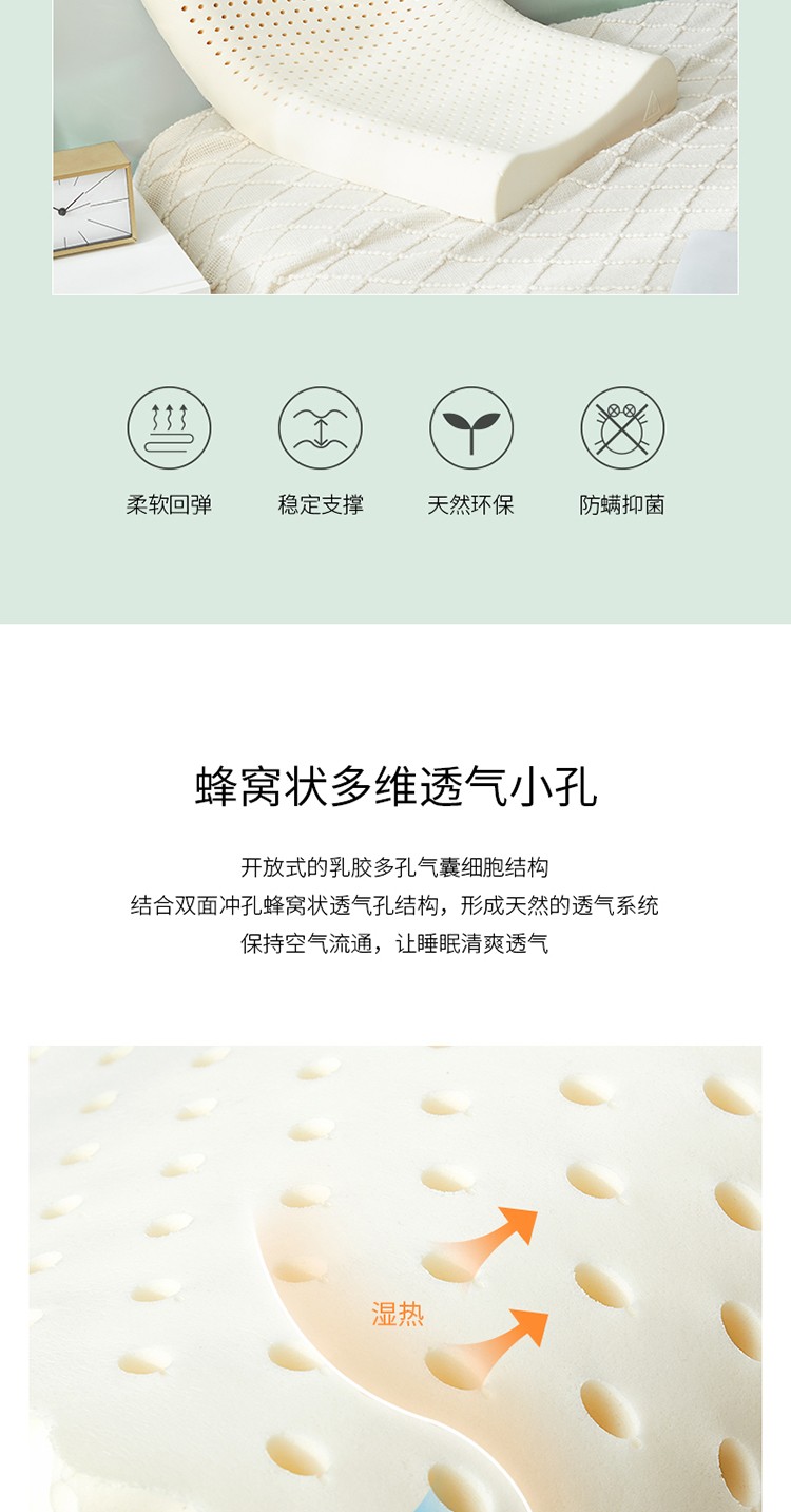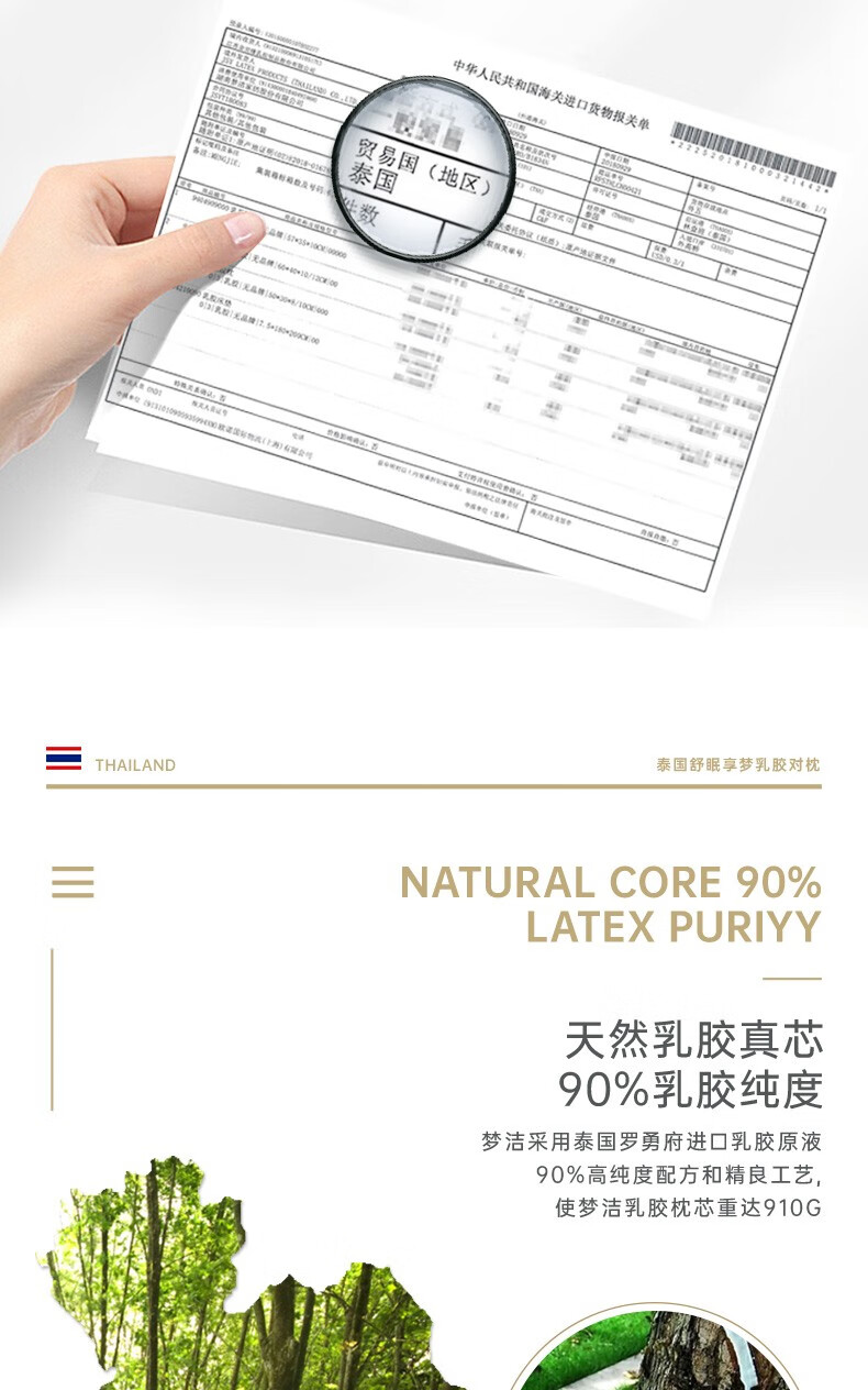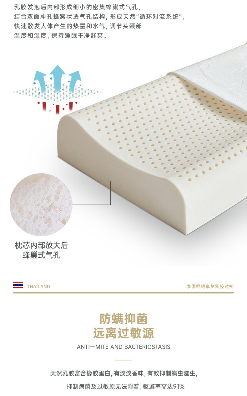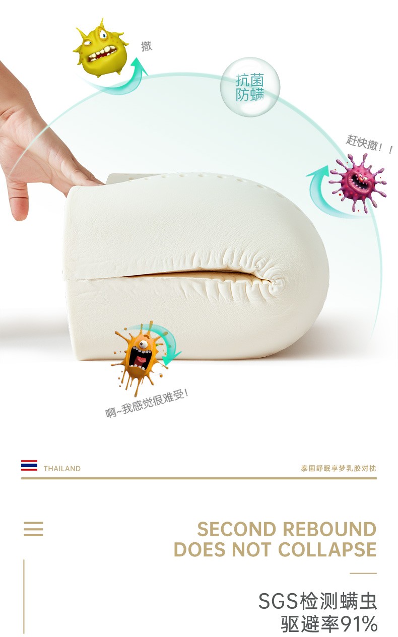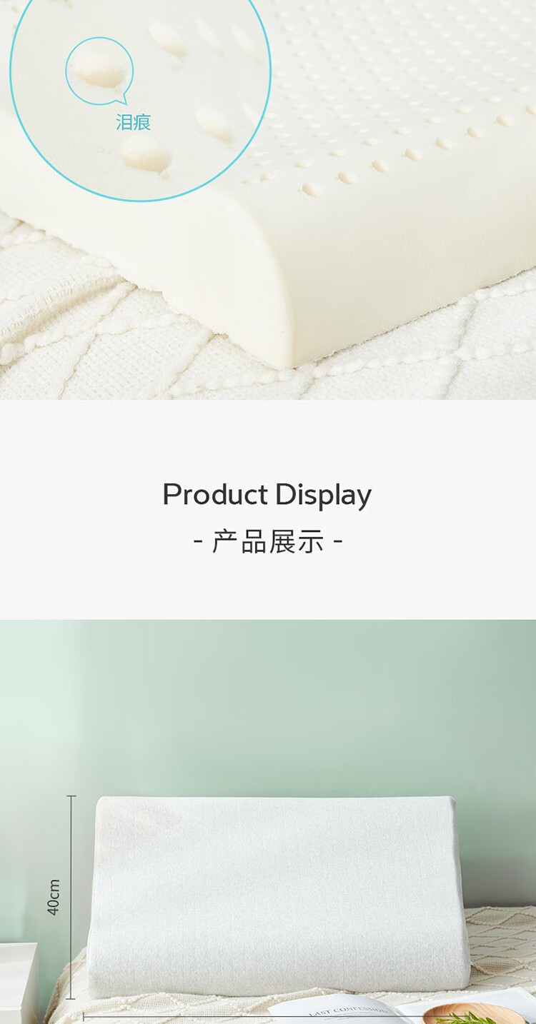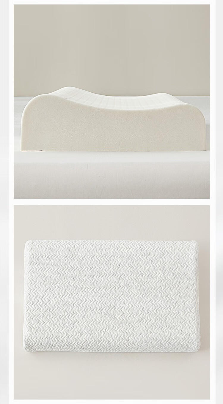 商品名称:梦洁家纺 泰国进口天然乳胶枕头 人体工学波浪曲线设计颈椎枕 美颂 泰国臻芯纯享乳胶枕 单位:个