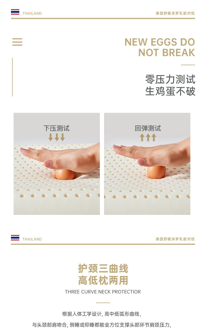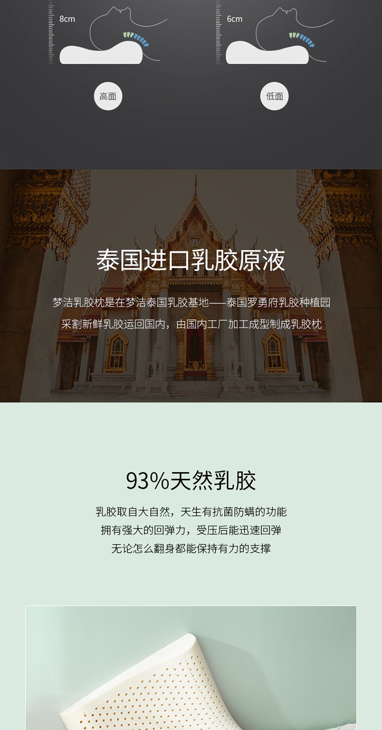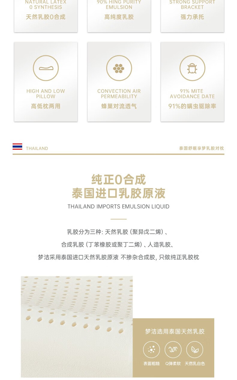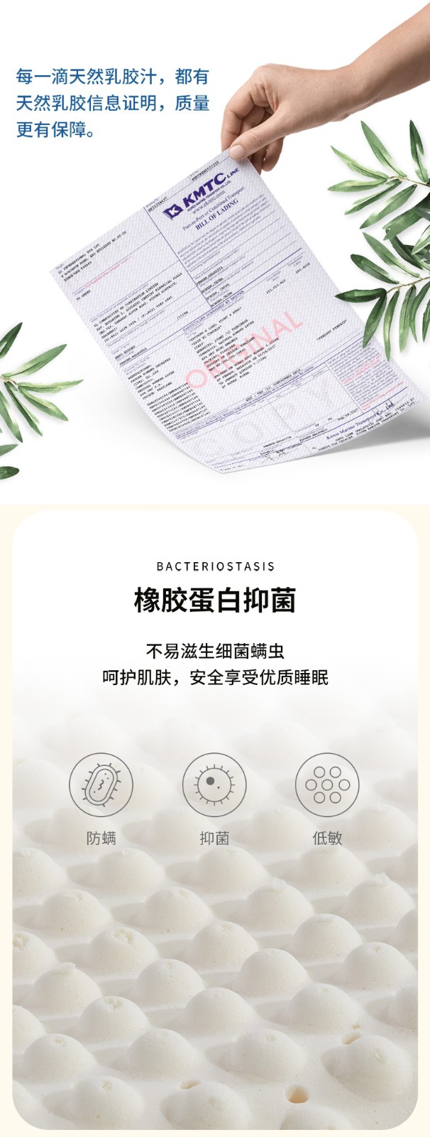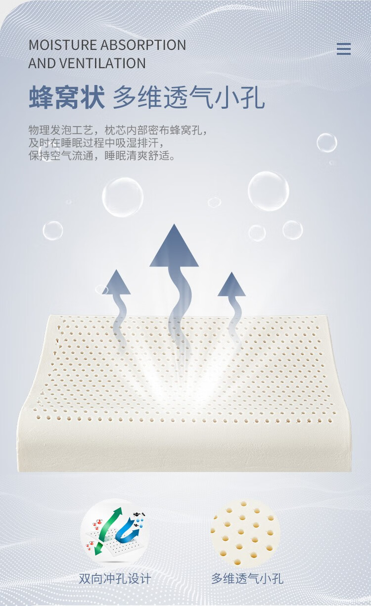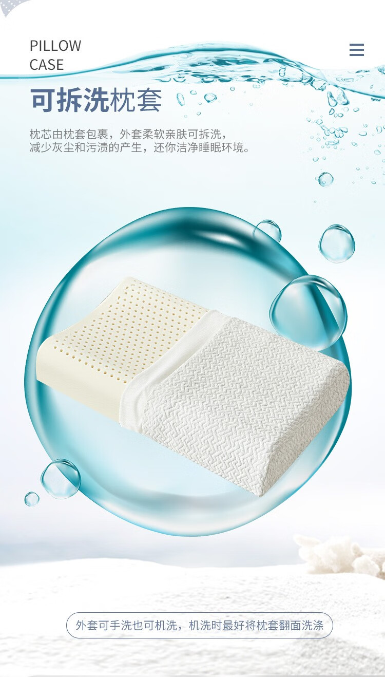 商品名称:梦洁家纺 泰国进口天然乳胶枕头 人体工学波浪曲线设计颈椎枕 美颂 泰国臻芯纯享乳胶枕 单位:个