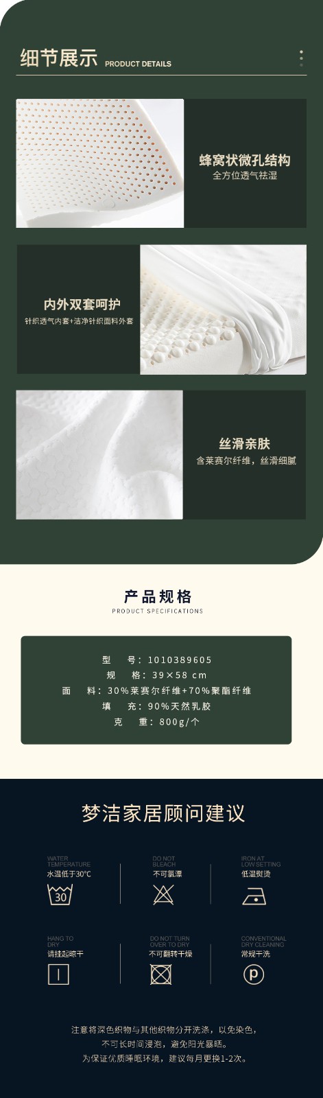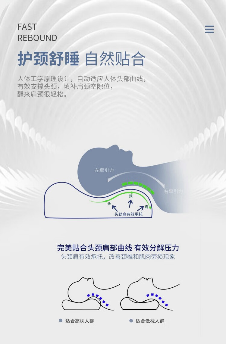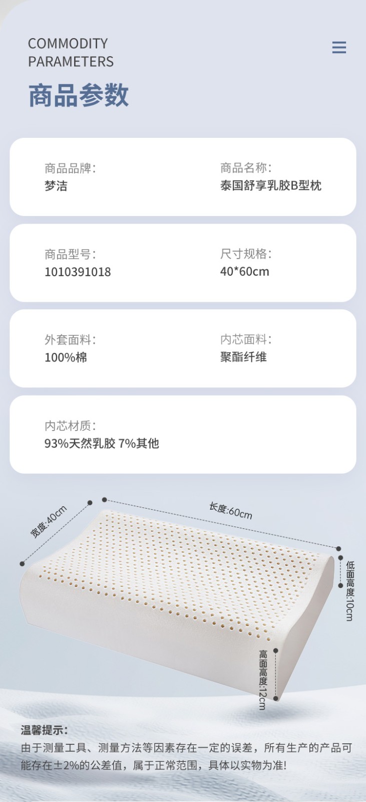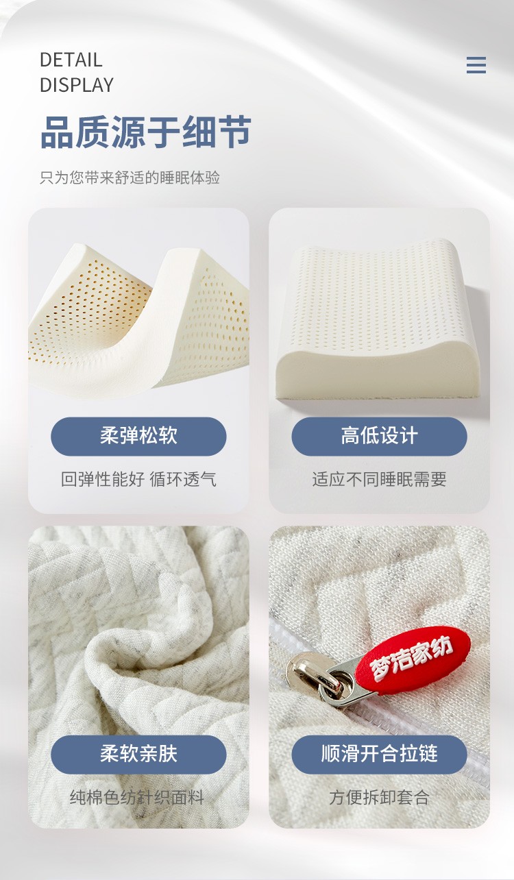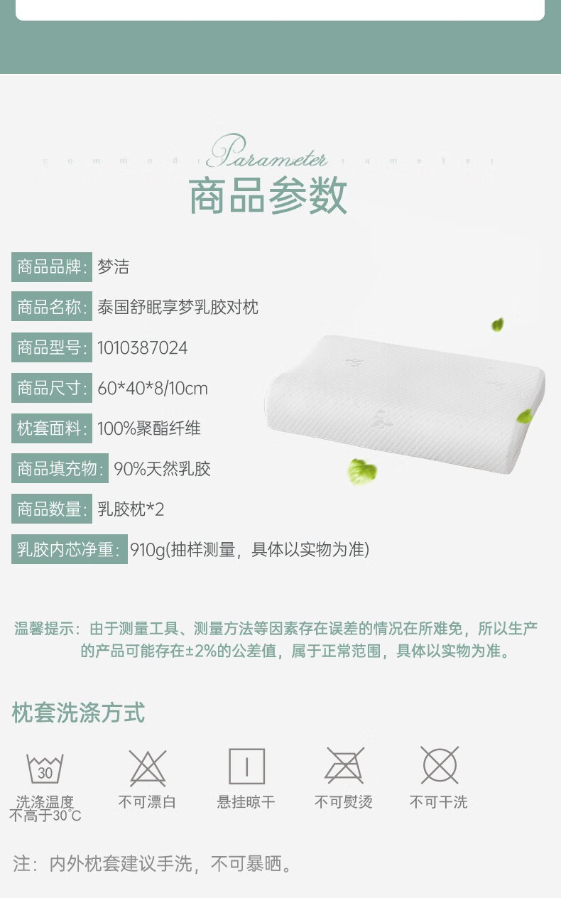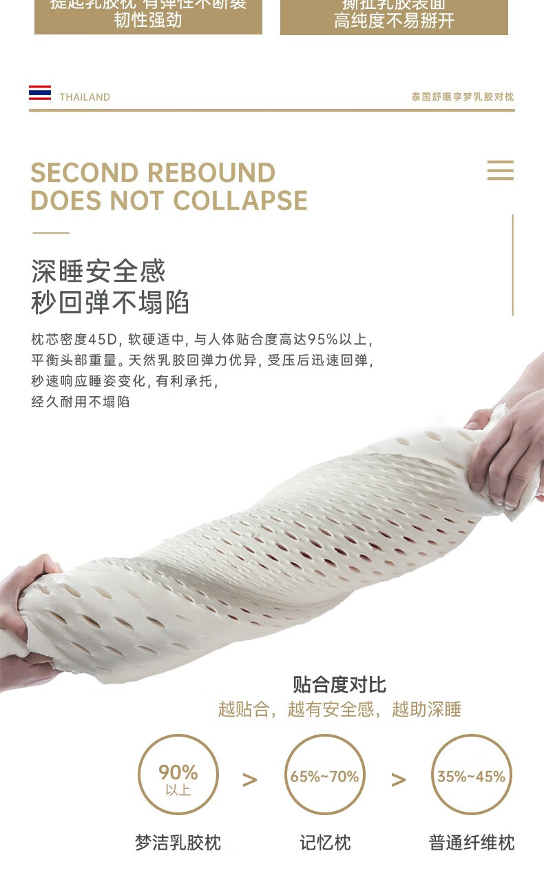商品名称:梦洁家纺 泰国进口天然乳胶枕头 人体工学波浪曲线设计颈椎枕 美颂 泰国臻芯纯享乳胶枕 单位:个