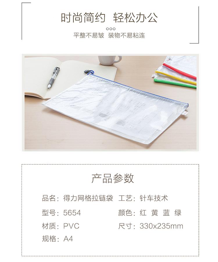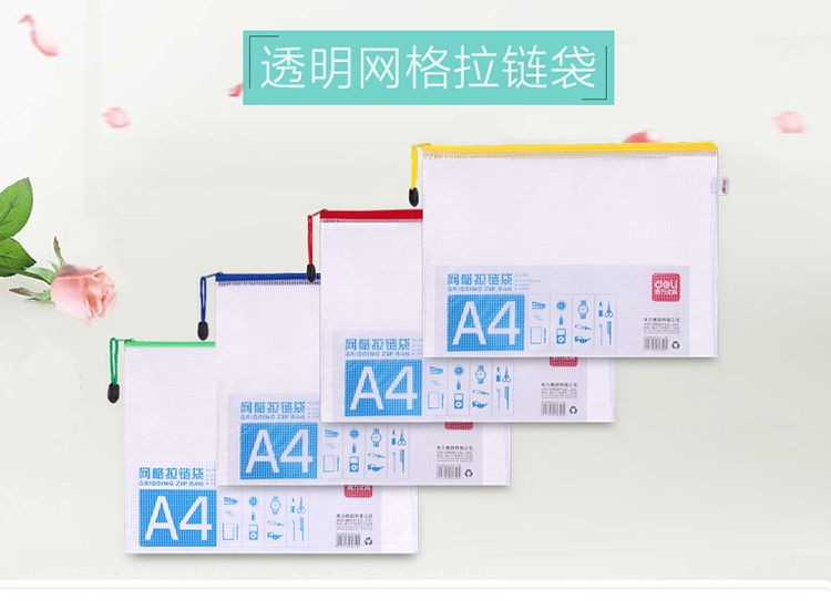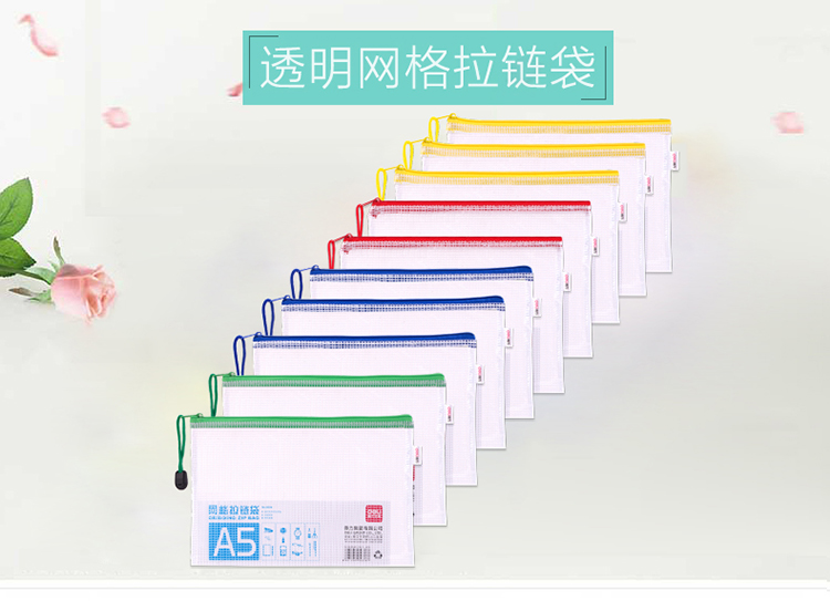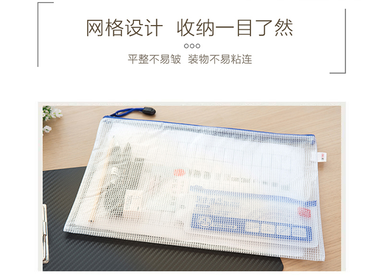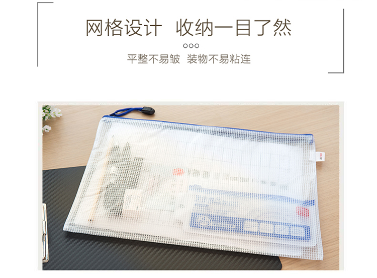 商品名称:得力 5654 5656网格拉链袋 A4A5文件票据袋资料收纳袋 10个/包