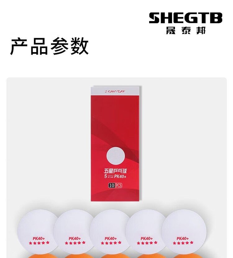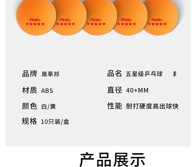 商品名称:晟泰邦 乒乓球五星比赛球ABS新材料PK40+白黄色各5只装(10只装)单位:盒