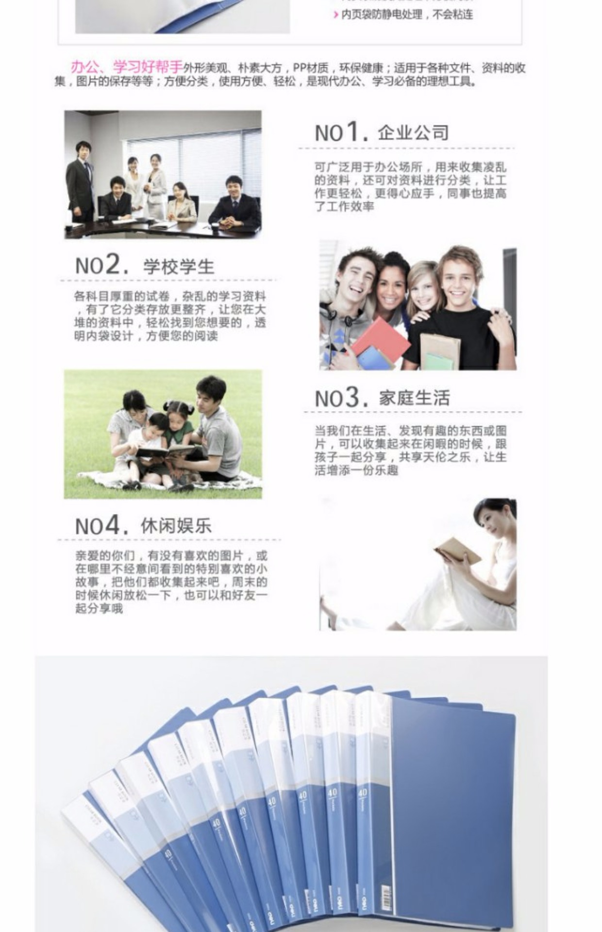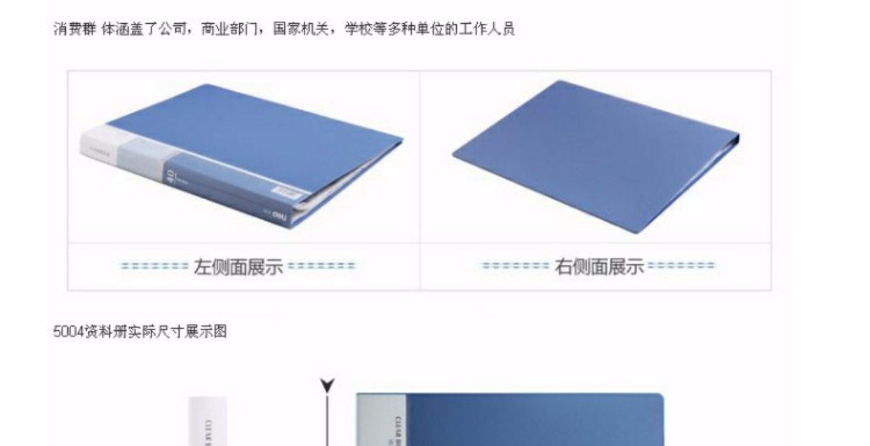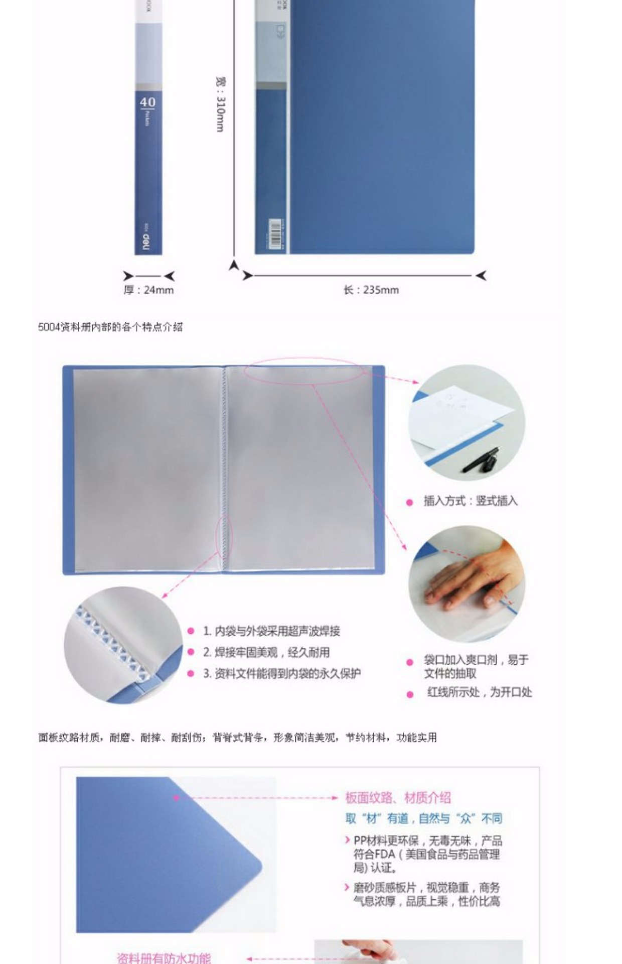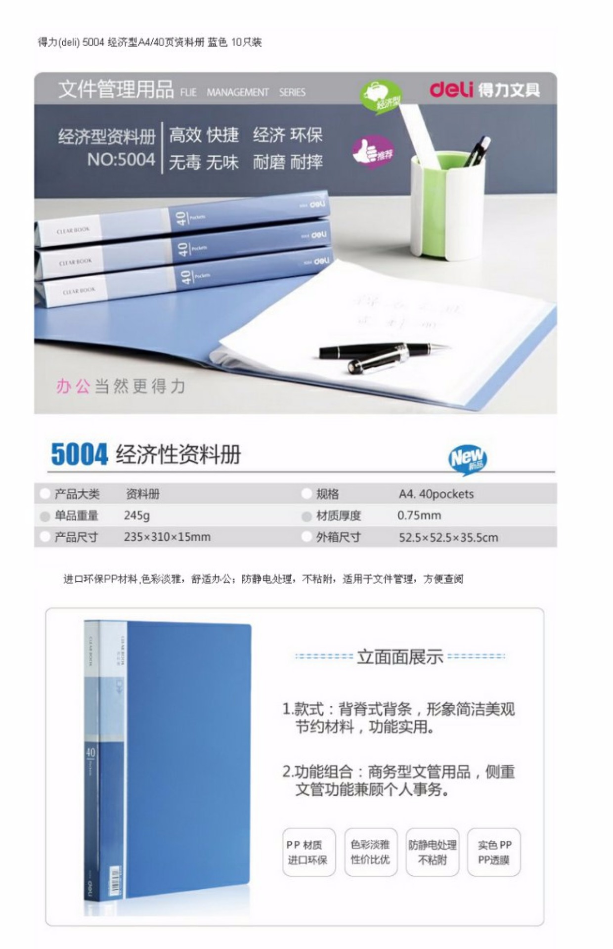 商品名称:得力 5004资料册40页 透明插页袋文件夹插袋活页A4档案册办公用品