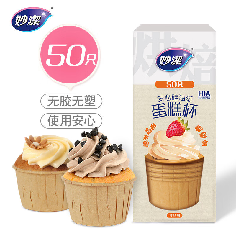 商品名称:妙洁安心硅油纸蛋糕模具 50只 蛋糕纸杯马芬杯戚风DIY蛋糕杯子 烘焙 单位:组