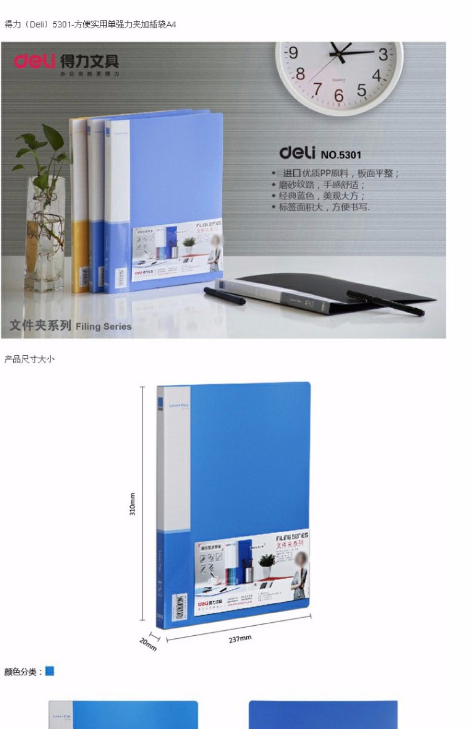 商品名称:得力 5301文件夹强力夹A4单夹资料夹办公用品文具会议白领专用铁夹