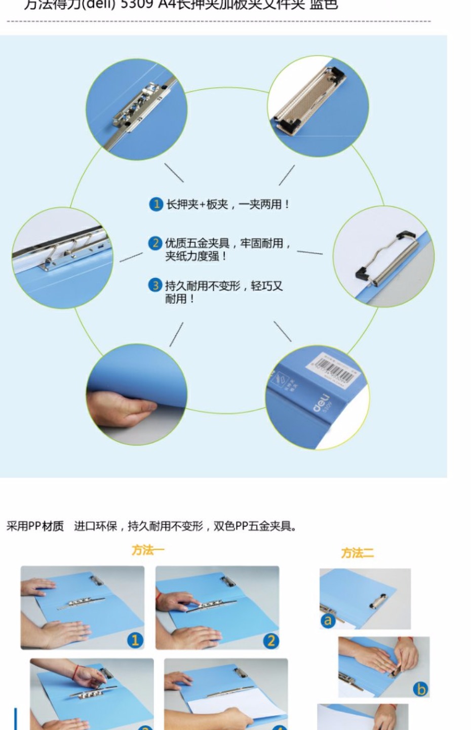 商品名称:得力 5309长夹文件夹长押夹8寸长双强力夹商务资料夹A4夹