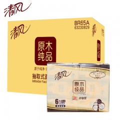 清风 原木纯品抽纸批发纸巾三层150抽餐巾纸整箱48包家庭装 BR65A