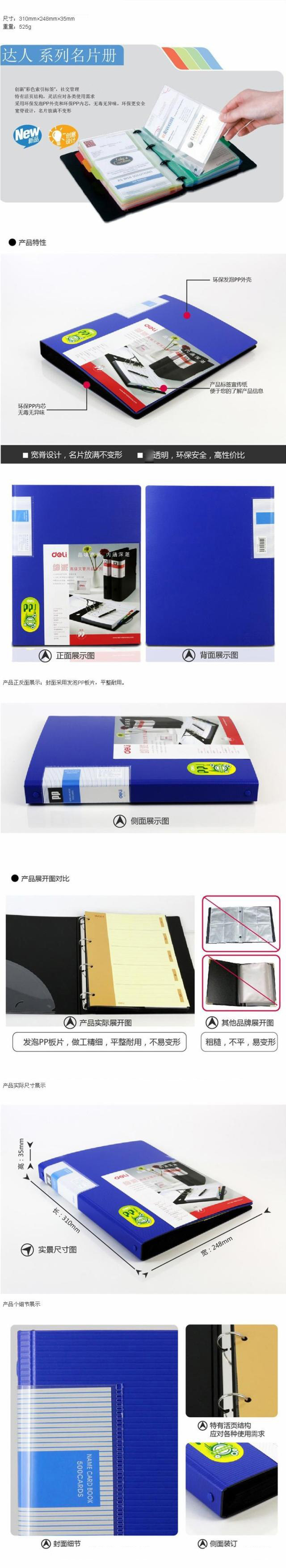 商品名称:得力 5779名片册 商务名片收纳簿 超透创意活页名片本 500片